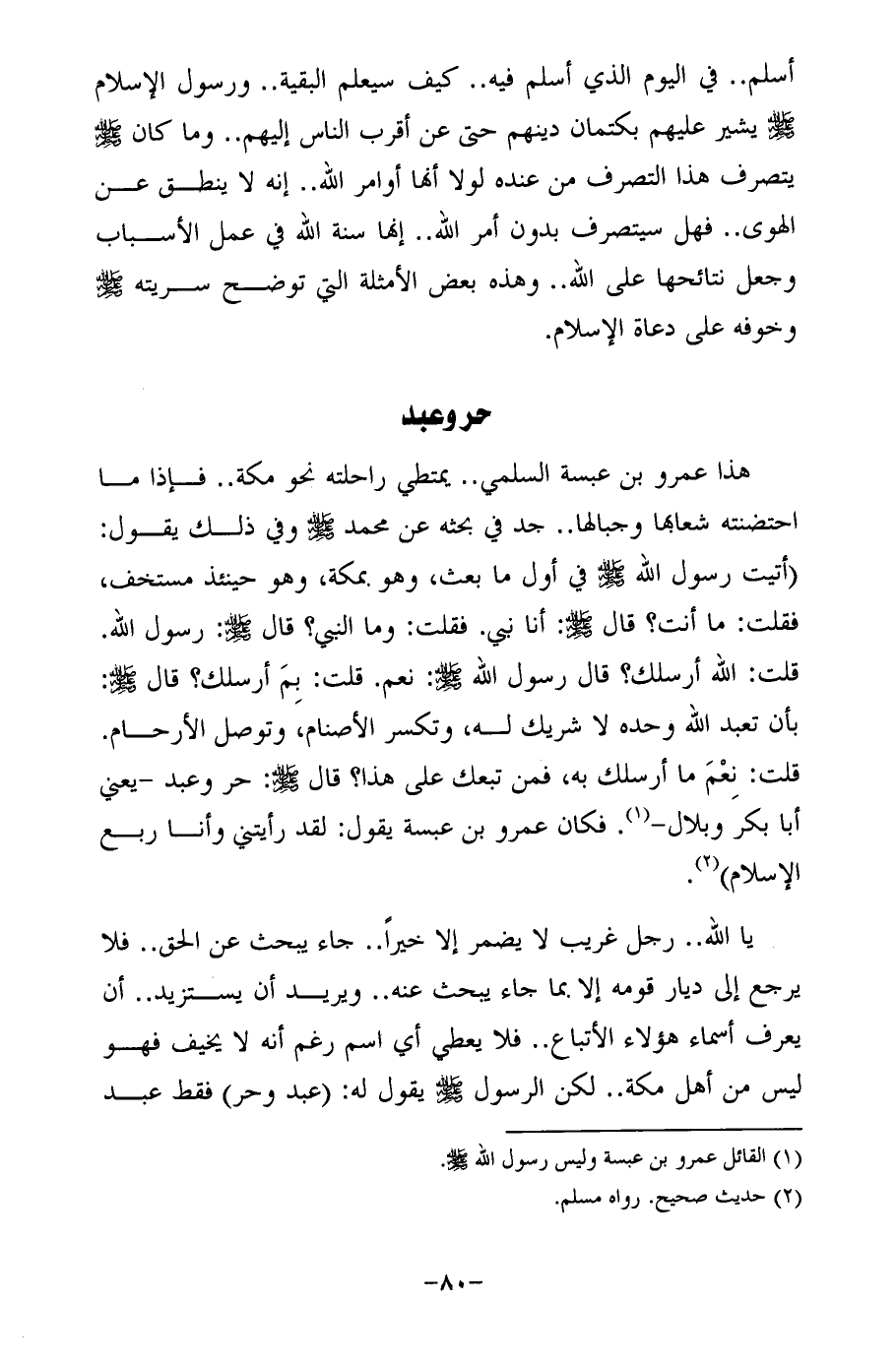 (¬1) القائل عمرو بن عبسة وليس رسول الله -صلى الله عليه وسلم-.