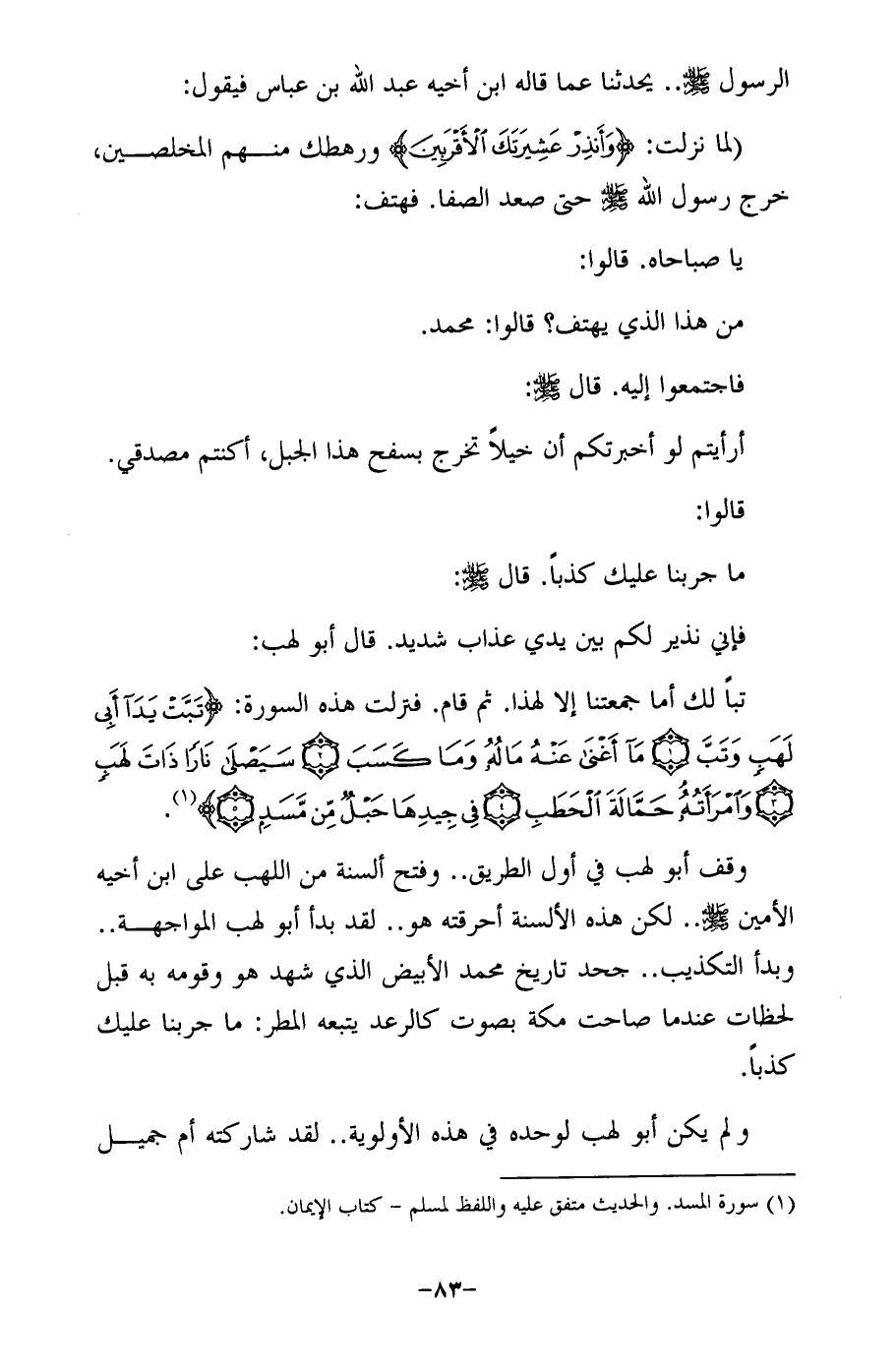 (¬1) سورة المسد. والحديث متفق عليه واللفظ لمسلم- كتاب الإيمان.