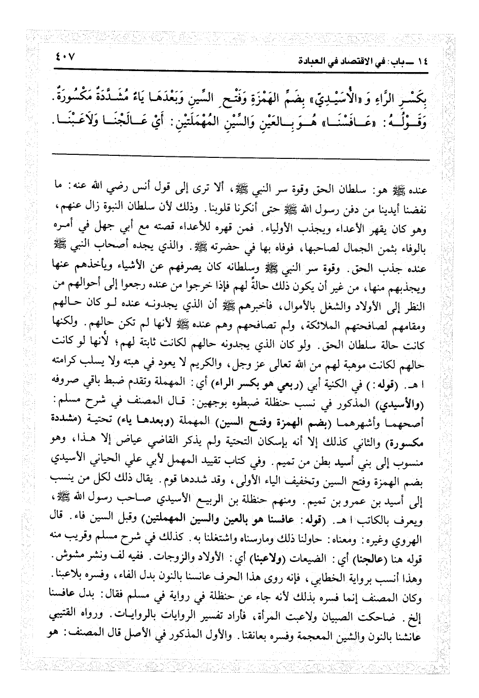 وفي كتاب «تقييد المهمل» لأبي علي الحياني: الأسيدي بضم الهمزة وفتح السين وتخفيف الياء الأولى وقد شددها قوم، يقال ذلك لكل من ينسب إلى أسيدبن عمروبن تميم، ومنهم حنظلةبن الربيع الأسيدي صاحب رسول الله - صلى الله عليه وسلم - ويعرف بالكاتب اهـ (قوله عافسنا هو بالعين والسين المهملتين) وقيل السين فاء.