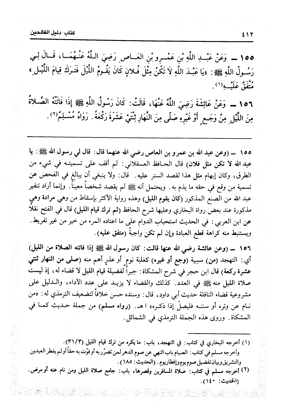 1553 - (وعن عبد ابن عمروبن العاص رضي الله عنهما قال: قال لي رسول الله: يا عبد الله لا تكن مثل فلان) .