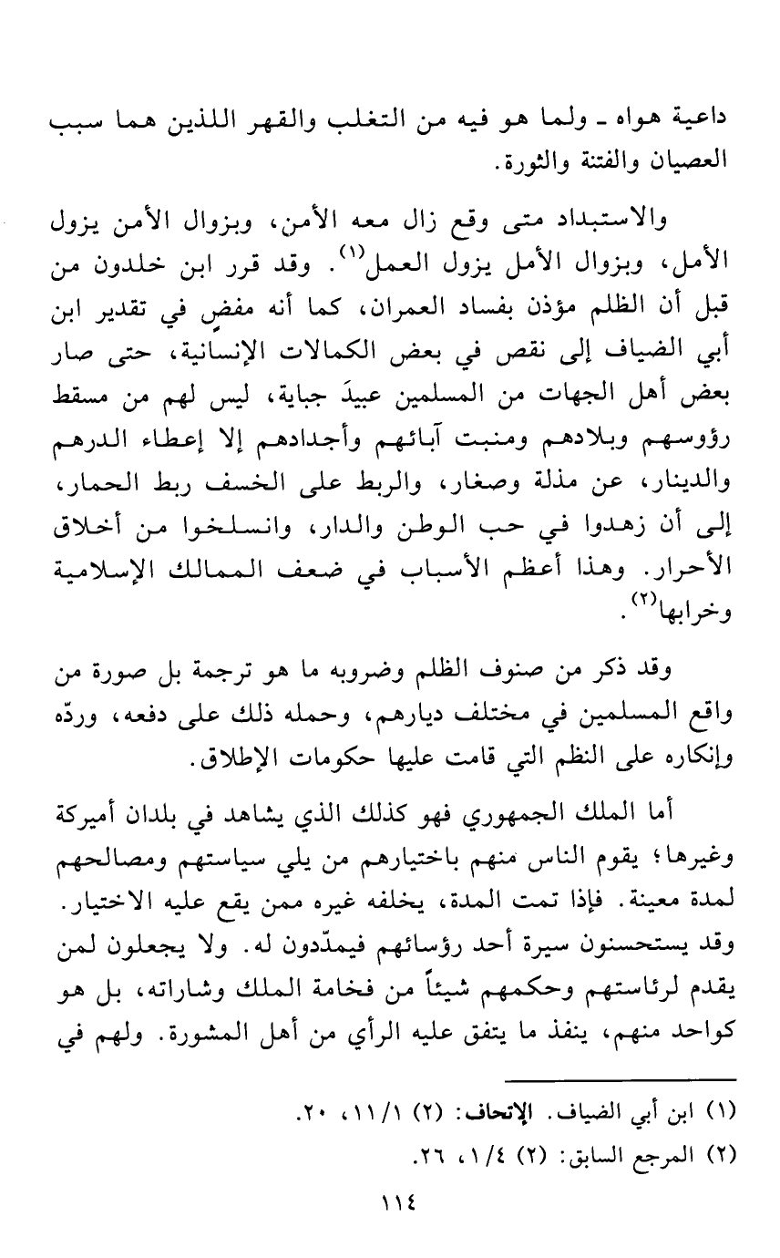 وقد ذكر من صنوف الظلم وضروبه ما هو ترجمة بل صورة من واقع المسلمين في مختلف ديارهم، وحمله ذلك على دفعه، وردّه وإنكاره على النظم التي قامت عليها حكومات الإطلاق.