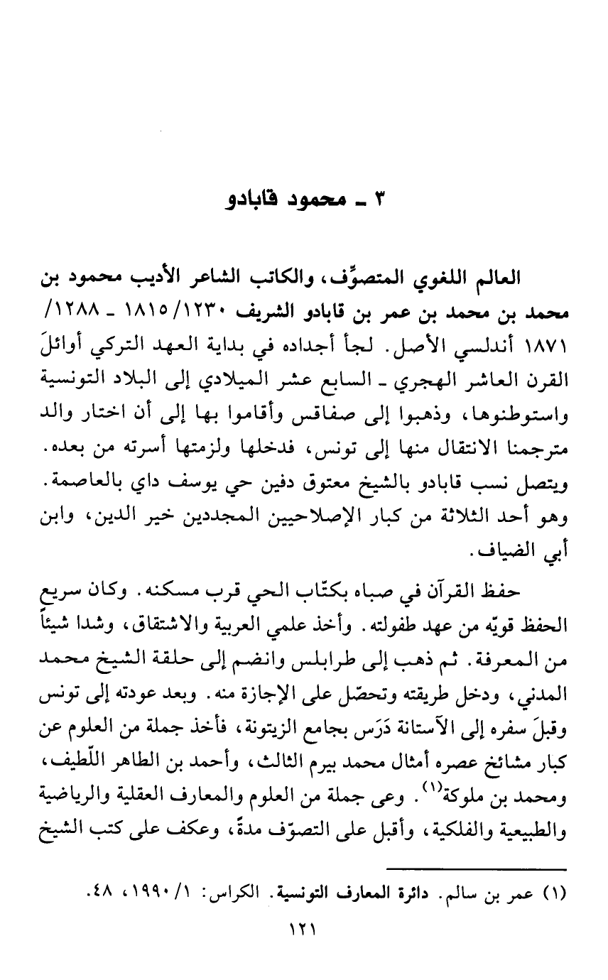 (¬1) عمر بن سالم. دائرة المعارف التونسية. الكراس: 1/ 1990، 48.