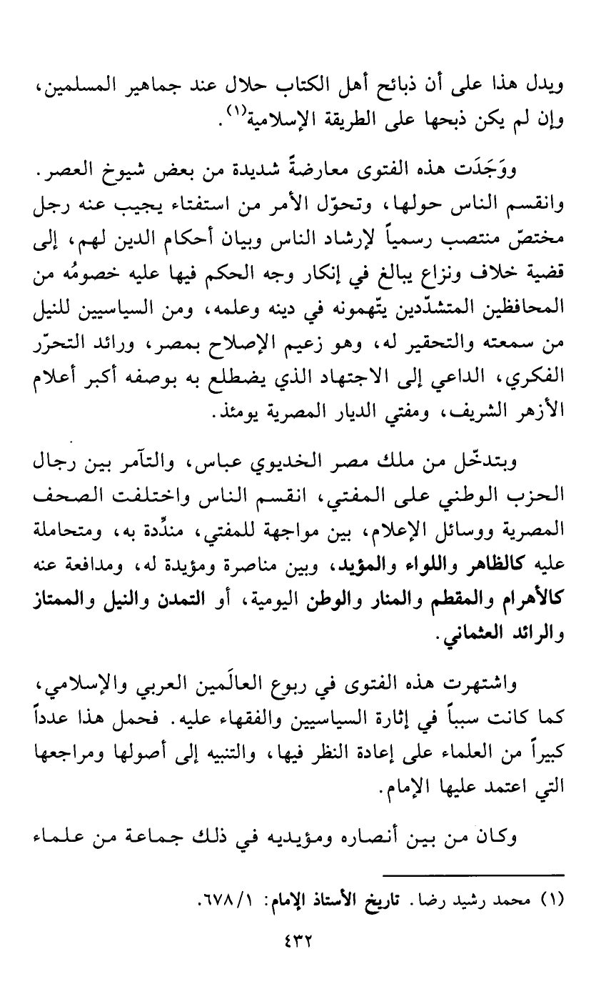 (¬1) محمد رشيد رضا. تاريخ الأستاذ الإمام: 1/ 678.