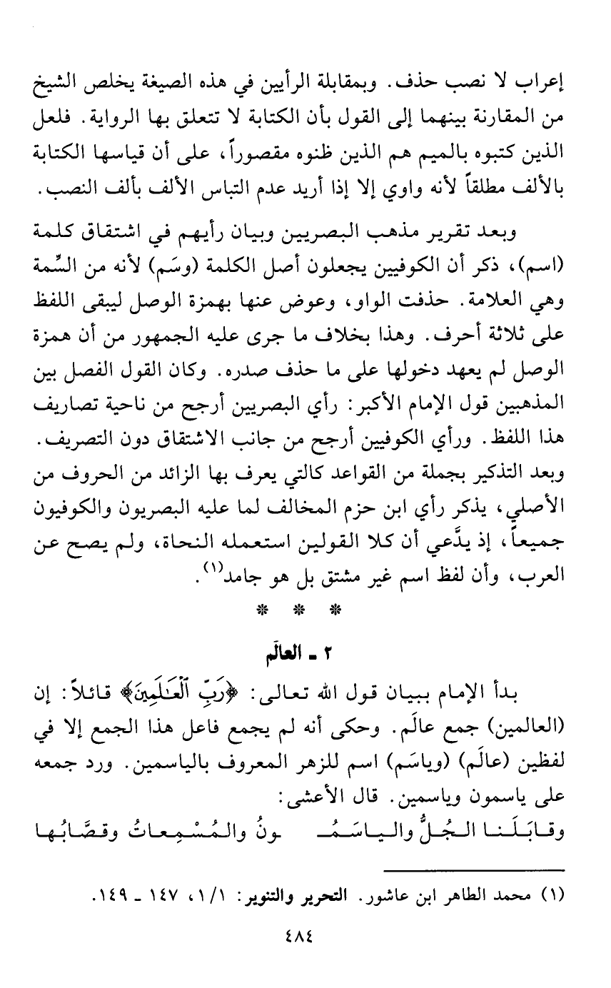 (¬1) محمد الطاهر ابن عاشور. التحرير والتنوير: 1/ 1، 147 - 149.