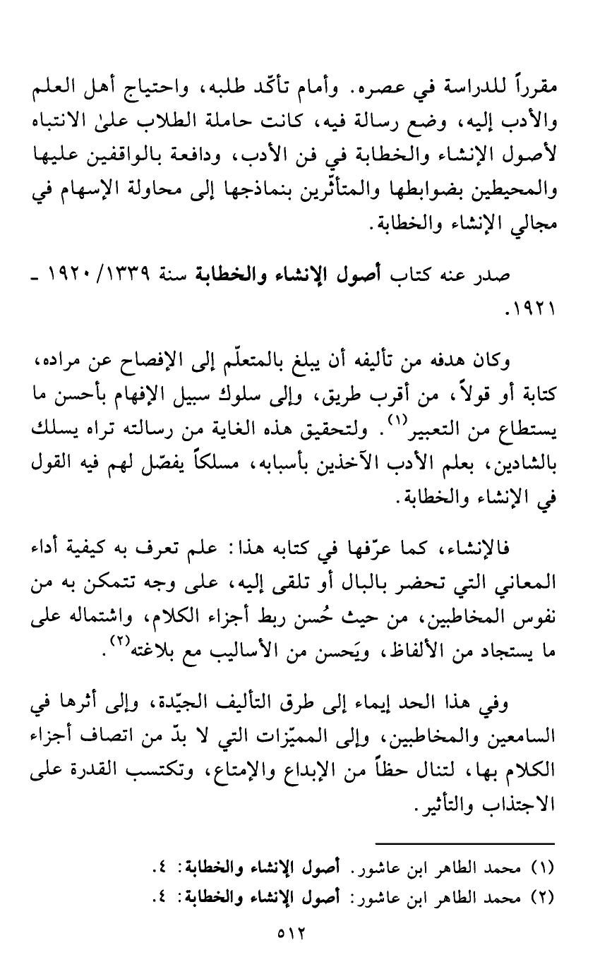 (¬1) محمد الطاهر ابن عاشور: أصول الإنشاء والخطابة: 4.