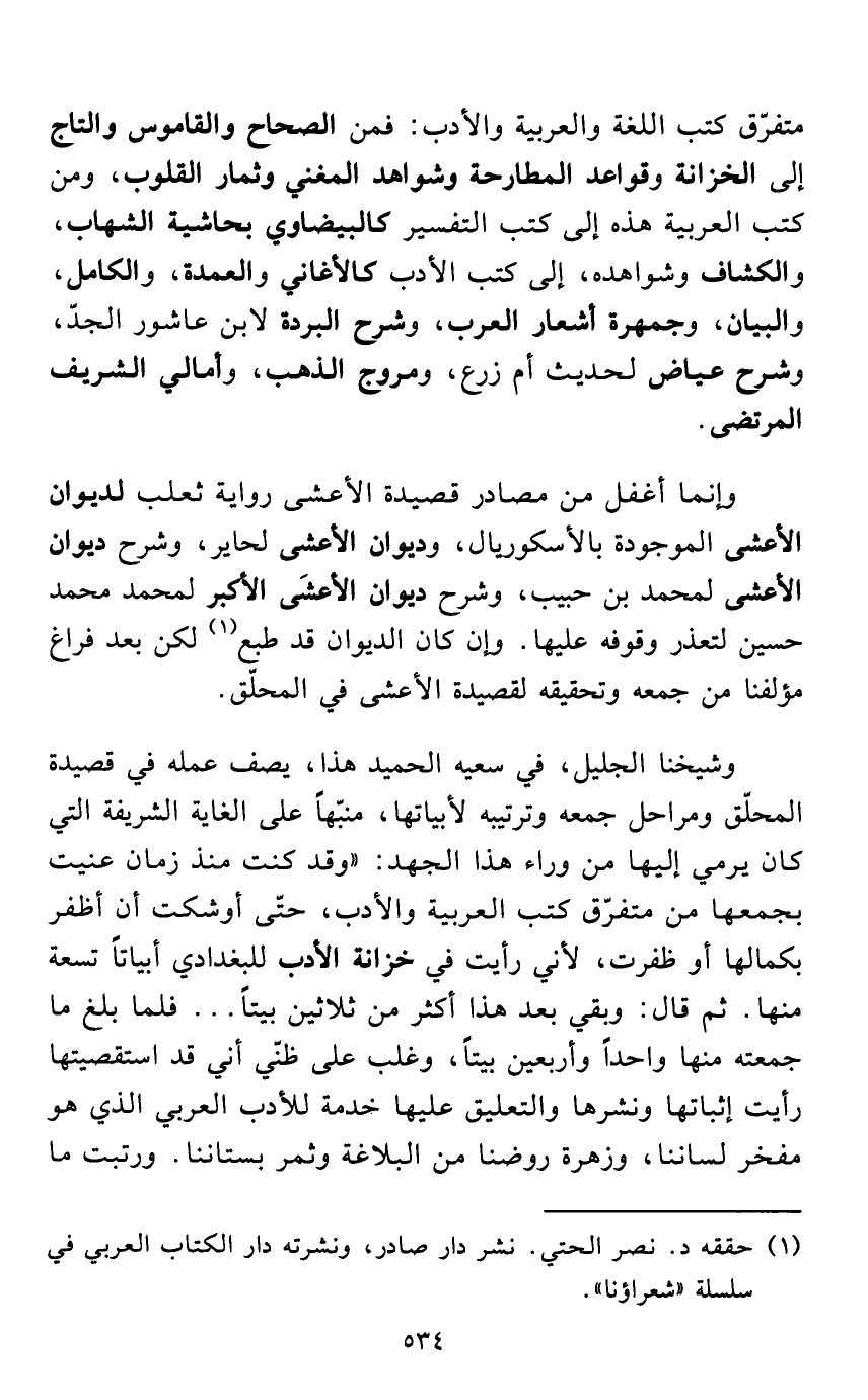 وإنما أغفل من مصادر قصيدة الأعشى رواية ثعلب لديوان الأعشى الموجودة بالأسكوريال وديوان الأعشى لحاير، وشرح ديوان الأعشى لمحمد بن حبيب، وشرح ديوان الأعشَى الأكبر لمحمد محمد حسين لتعذر وقوفه عليها. وإن كان الديوان قد طبع (¬1) لكن بعد فراغ مؤلفنا من جمعه وتحقيقه لقصيدة الأعشى في المحلّق.