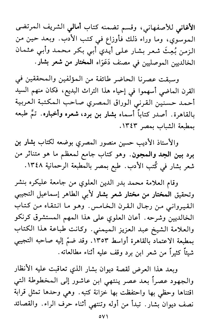 وسبقت عصرنا الحاضر طائفة من المؤلفين والمحققين في القرن الماضي أسهموا في إحياء هذا التراث البديع، فكان منهم السيد أحمد حسنين القرني الوراق المصري صاحب المكتبة العربية بالقاهرة. أصدر كتاباً أسماه بشار بن برد، شعره وأخباره. تمَّ طبعه بمطبعة الشباب بمصر 1343.