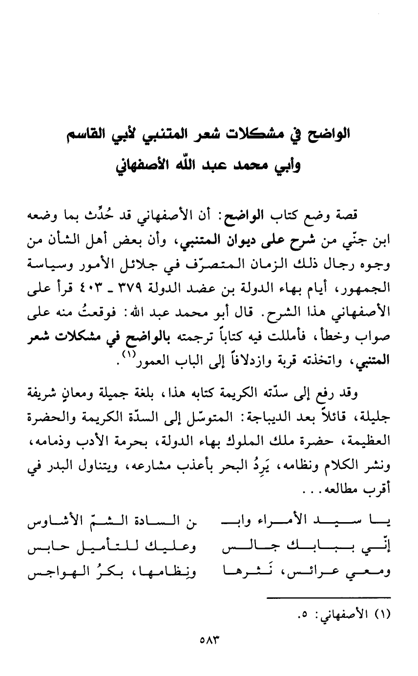 الواضح في مشكلات شعر المتنبي لأبي القاسم وأبي محمد عبد الله الأصفهاني