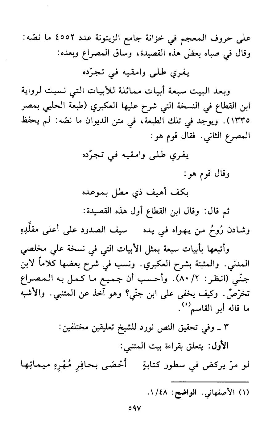 الأول: يتعلق بقراءة بيت المتنبي: