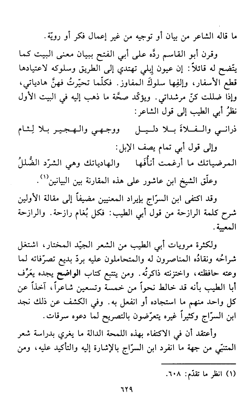 وأعتقد أن في الاكتفاء بهذه اللمحة الدالة ما يغري بدراسة شعر المتنبّي من جهة ما انفرد ابن السرّاج بالإشارة إليه والتأكيد عليه، ومن