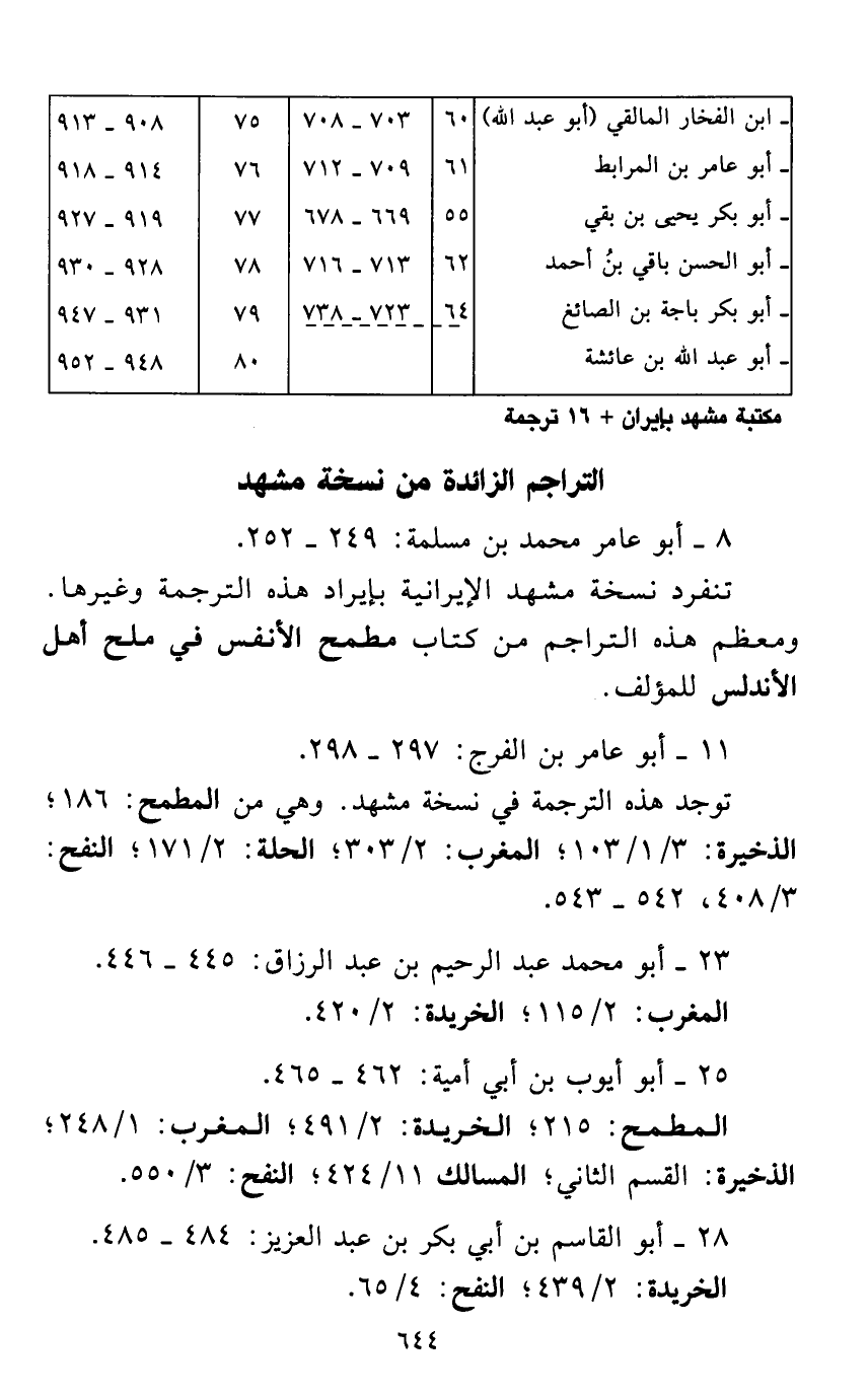 - ابن الفخار المالقي (أبو عبد الله) ... 60 ... 703 - 708 ... 75 ... 908 - 913
