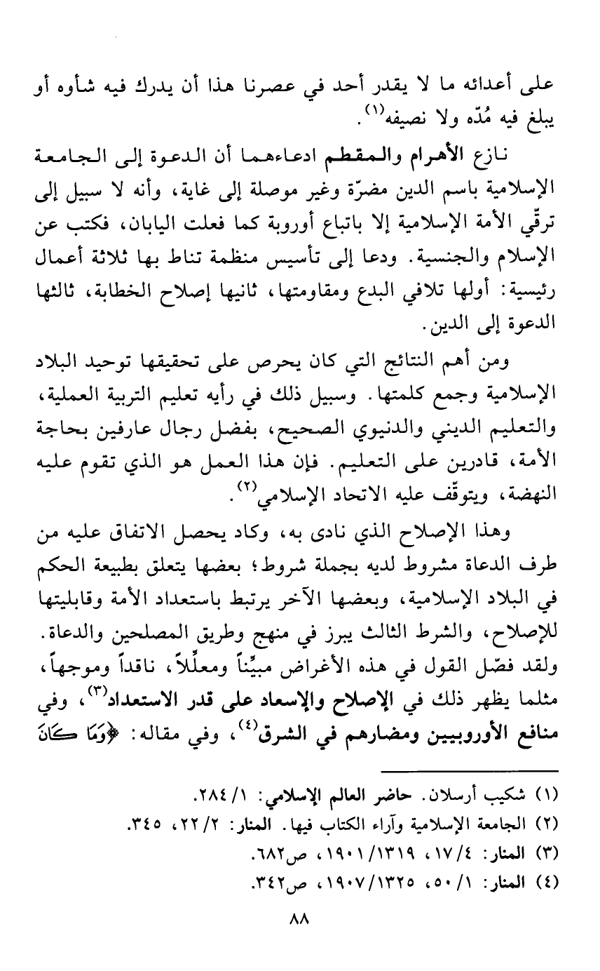 (¬2) الجامعة الإسلامية وآراء الكتاب فيها. المنار: 2/ 22، 345.