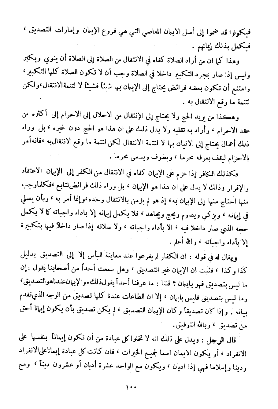 قال الرجل: ويدل على ذلك أنه لا تخلوا كل عبادة من أن يكون إيمانا بنفسها على الانفراد، أو يكون الإيمان اسما لجميع الخيرات، فإن كانت كل عبادة إيمانا على الانفراد ودينا وإسلاما فهي إذا أديان، ويكون مع الواحد عشرة أديان أو عشرون ديناً، ومع