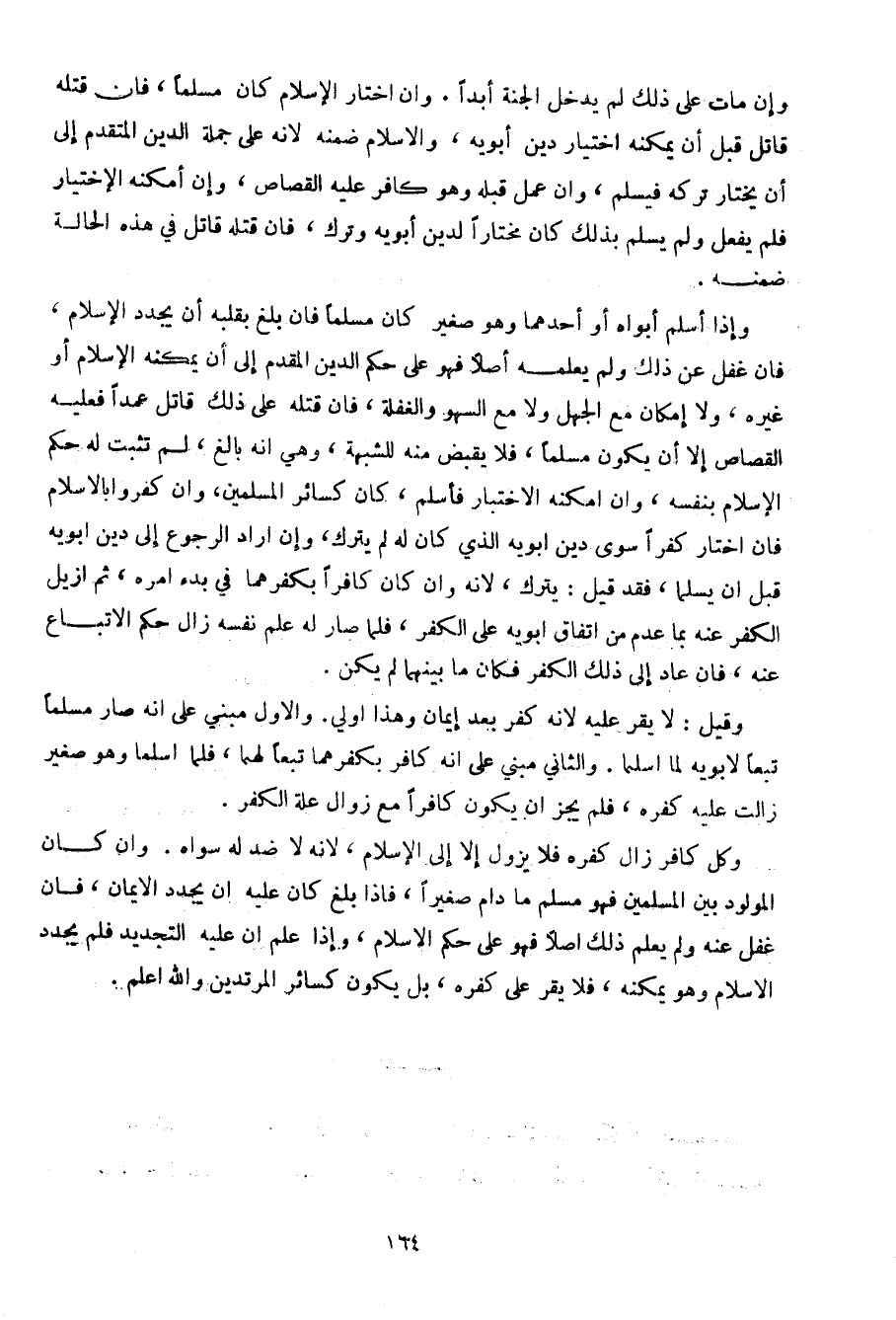 وكل كافر زال كفره فلا يزول إلا إلى الإسلام، لأنه لا ضد له سواه. وإن كان المولود بين المسلمين فهو مسلم ما دام صغيرا، فإذا بلغ كان عليه إن يحدد الإيمان، فإن غفل عنه ولم يعلم ذلك أصلا فهو على حكم الإسلام، وإذا علم أن عليه التجديد فلم يجدد الإسلام وهو يمكنه، فلا يقر على كفره، بل يكون كسائر المرتدين والله أعلم.