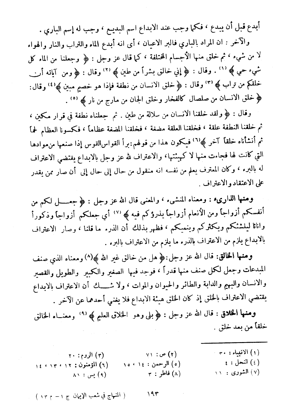 وقال: {ولقد خلقنا الإنسان من سلالة من طين. ثم جعلناه نطفة في قرار مكين، ثم خلقنا النطفة علقة، فخلقنا العلقة مضغة، فخلقنا المضغة عظاما، فكسونا العظام لحما ثم أنشأناه خلقت آخر} فيكون هذا من قولهم: برأ القواس القوس إذا صنعها من موادها التي كانت لها فجاءت منها لا كهيئتها، والاعتراف لله عز وجل بالإبداع يقتضي الاعتراف له بالبرء، وكان المعترف يعلم من نفسه أنه منقول من حال إلى حال إلى أن صار ممن يقدر على الاعتقاد والاعتراف.