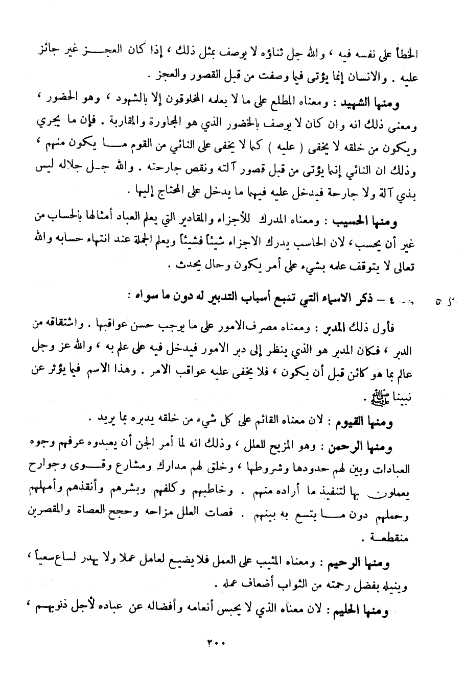 4 - ذكر الأسماء التي تنبع أسبا بالتدبير له دون ما سواه: