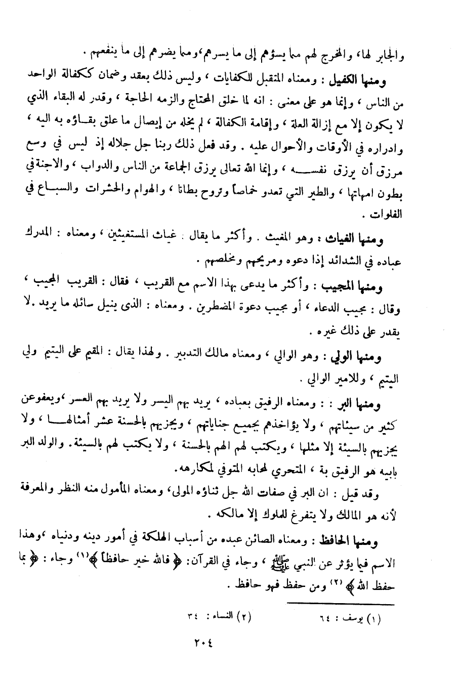 ومنها البر: ومعناه الرفيق بعباده، يريد بهم اليسر ولا يريد بهم العسر، ويعفو عن كثير من سيئاتهم، لا يؤاخذهم بجميع جناياتهم، ويجزيهم بالحسنة عشر أمثالها، ولا يجزيهم بالسيئ إلا مثلها، ويكتب لهم الهم بالحسنة، ولا يكتب لهم بالسيئة. والولد البر بابيه هو الرفيق به، المتحري لمحابه المتوفي لمكارهه.