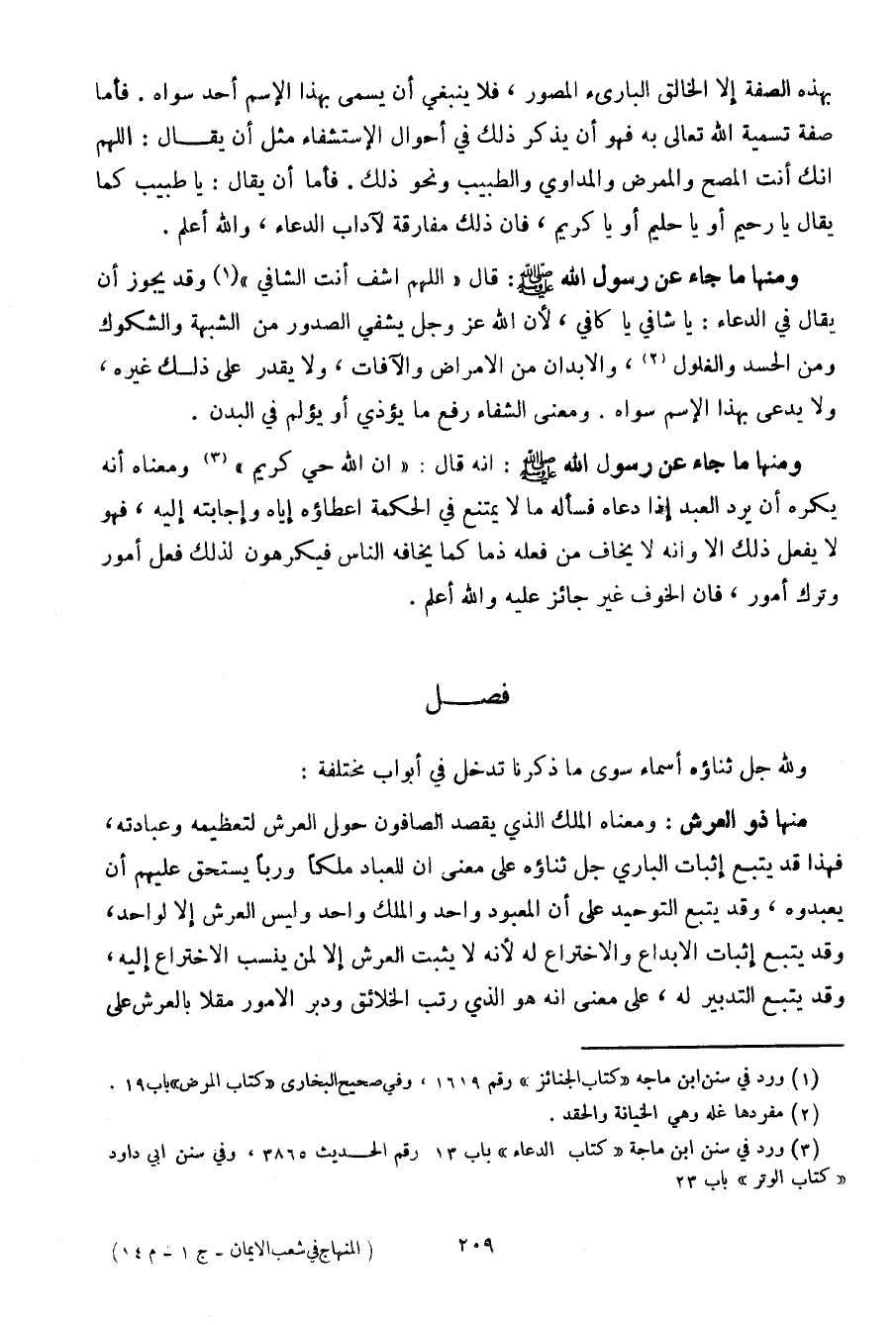 ومنها ما جاء عن رسول الله صلى الله عليه وسلم: أنه قال: "أن الله حي كريم" ومعناه أنه يكره أن يرد العبد إذا دعاه فسأله ما لا يمتنع في الحكة إعطاؤه إياه وإجابته إليه، فهو لا يفعل ذلك إلا وانه لا يخاف من فعله ذما كما يخافه الناس فيكرهون لذلك فعل أمور وترك أمور، فإن الخوف غير جائز عليه والله أعلم.