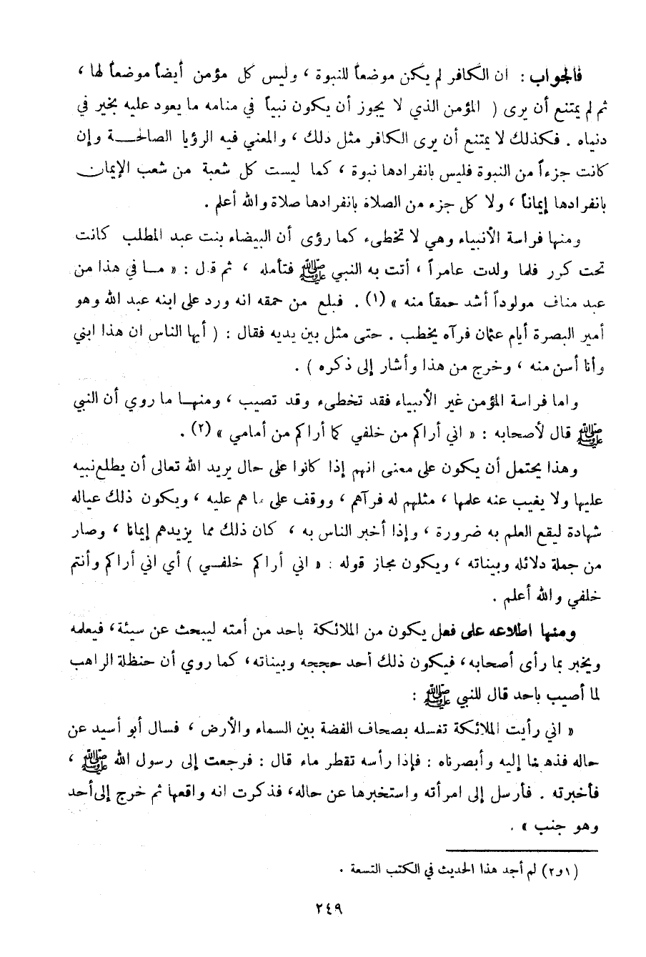 فالجواب: أن الكافر لم يكن موضعا للنبوة، وليس كل مؤمن أيضا موضعا لها، ثم لم يمتنع أن يرى "المؤمن الذي لا يجوز أن يكون نبيا في منامه ما يعود عليه بخير في دنياه. فكذلك لا يمتنع أن يرى الكافر مثل ذلك، ولمعني فيه الرؤيا الصالحة وإن كانت جزءا من النبوة فليس بانفرادها نبوة، كما ليست كل شعبة من شعب الإيمان بانفرادها إيمانا، ولا كل جزء من الصلاة بانفرادها صلاة والله أعلم.