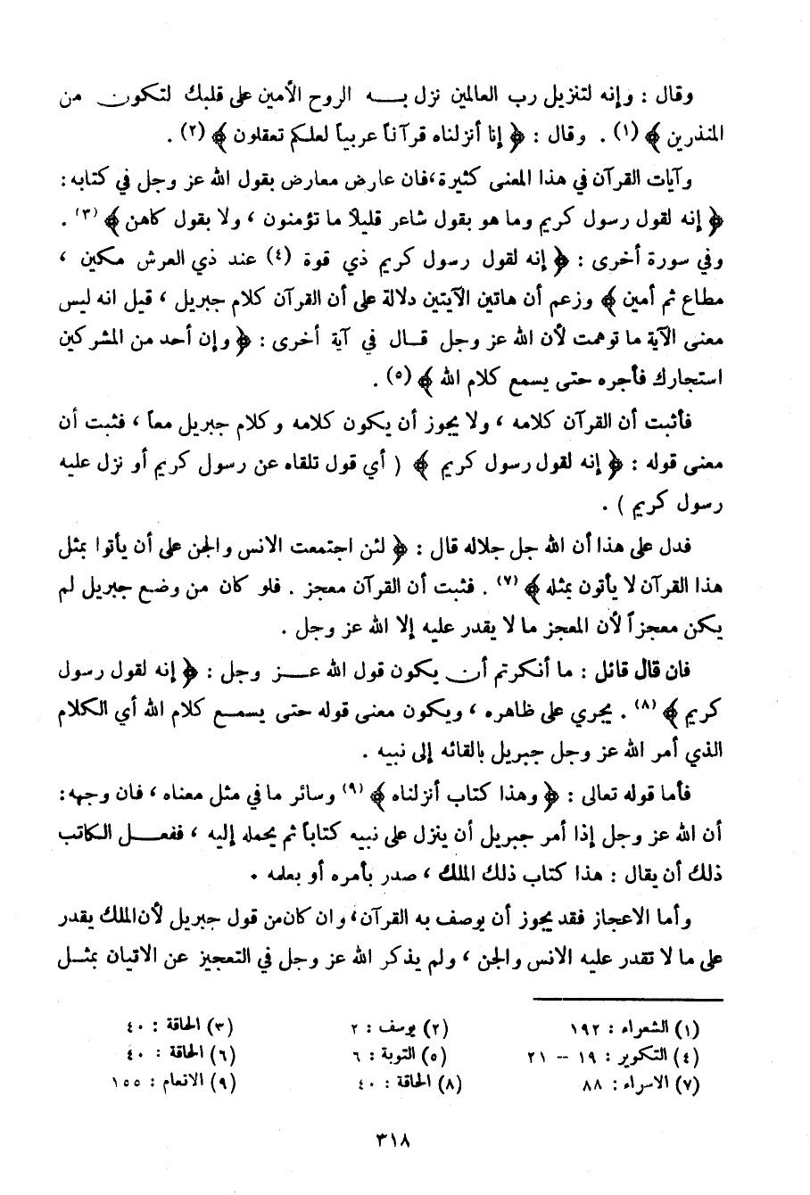 وفي سورة أخرى: {إنه لقول رسول كريم ذي قوة، عند ذي العرش مكين، مطاع ثم أمين} وزعم أن هاتين الآيتين دلالة على أن القرآن كلام جبريل، قيل أنه ليس معنى الآية ما توهمت لأن الله عز وجل قال في آية أخرى: {وإن أحد من المشركين استجارك فأجره حتى يسمع كلام الله}