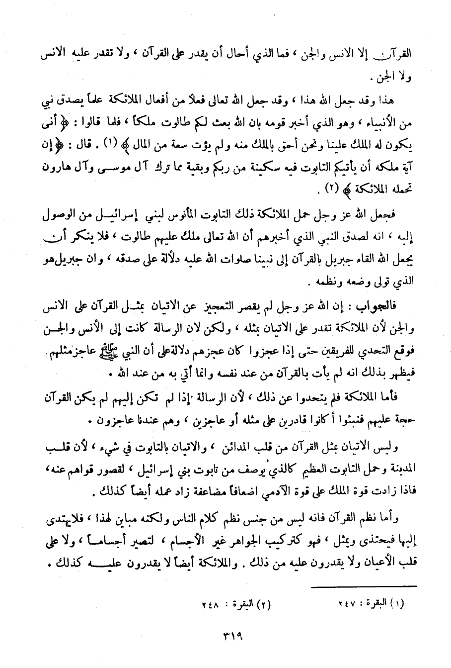 فجعل الله عز وجل حمل الملائكة ذلك التابوت المأنوس لبني إٍسرائيل من الوصول إليه، إنه لصدق النبي الذي أخبرهم أن الله تعالى ملك عليهم طالوت، فلا ينكر أن يجعل الله إلقاء جبريل بالقرآن إلى نبينا صلوات الله عليه دلالة على صدقه، وإن جبريل هو الذي تولى وضعه ونظمه.
