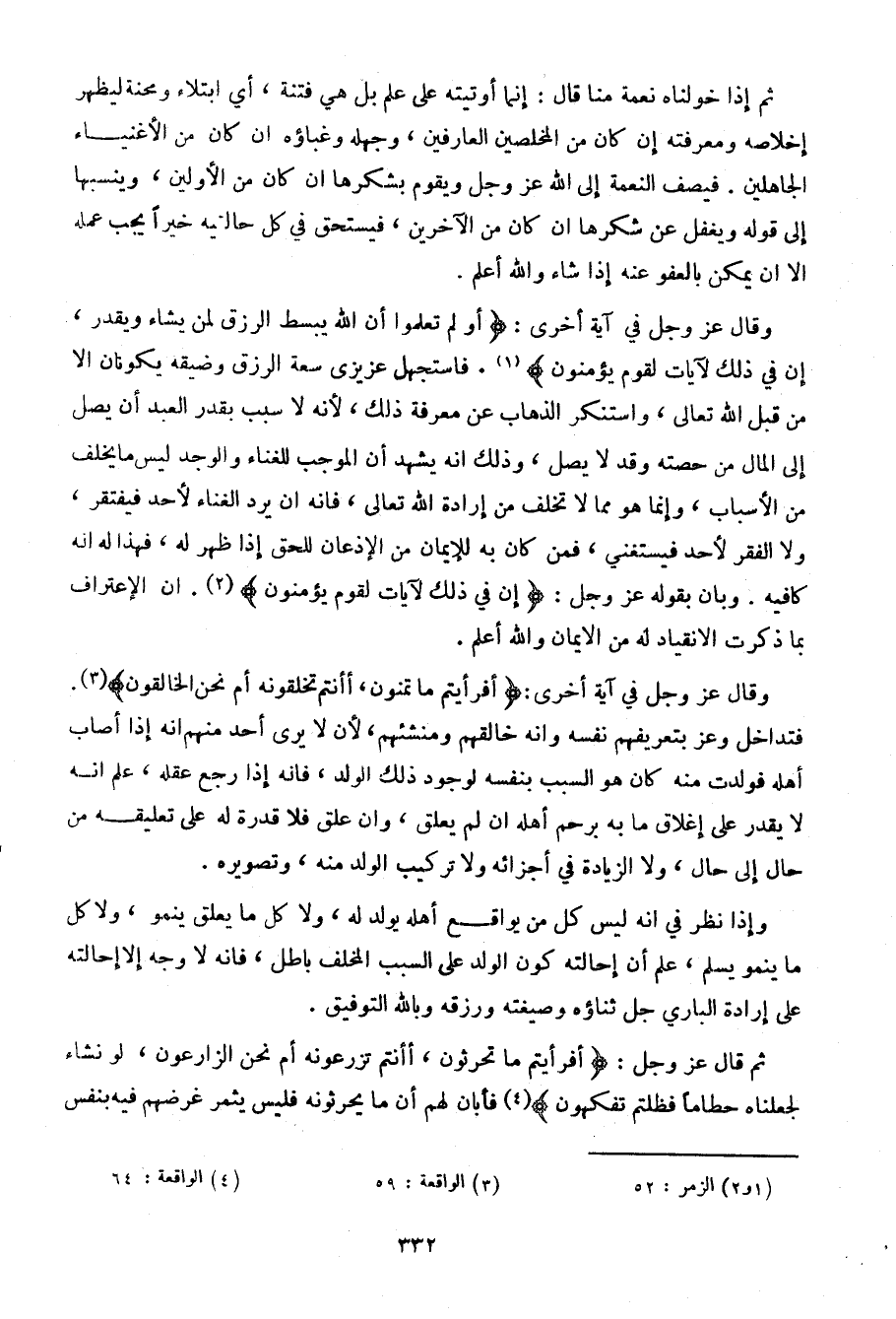 وقال عز وجل في آية أخرى: {أولم تعلموا أن الله يبسط الرزق لمن يشاء ويقدر، إن في ذلك لآيات لقوم يؤمنون}. فاستجهل عزيزي سعة الرزق وضيقه يكونان إلا من قبل الله تعالى، واستنكر الذهاب عن معرفة ذلك، لأنه لا سبب يقدر العبد أن يصل إلى المال من حصته وقد لا يصل، وذلك أنه يشهد أن الموجب للغناء والوجد ليثس ما يخلف من الأسباب، وإنما هو مما لا تخلف من إرادة الله تعالى، فإنه إن يرد الغناء لأحد يفتقر، ولا الفقر لأحد فيستغني، فمن كان به للإيمان من الإذعان للحق إذا ظهر له، فهذا له أنه كافيه، وبأن يقوله عز وجل: {إن في ذلك لآيات لقوم يؤمنون}. إن الإعتراف بما ذكرت الانقياد له من الإيمان والله أعلم.