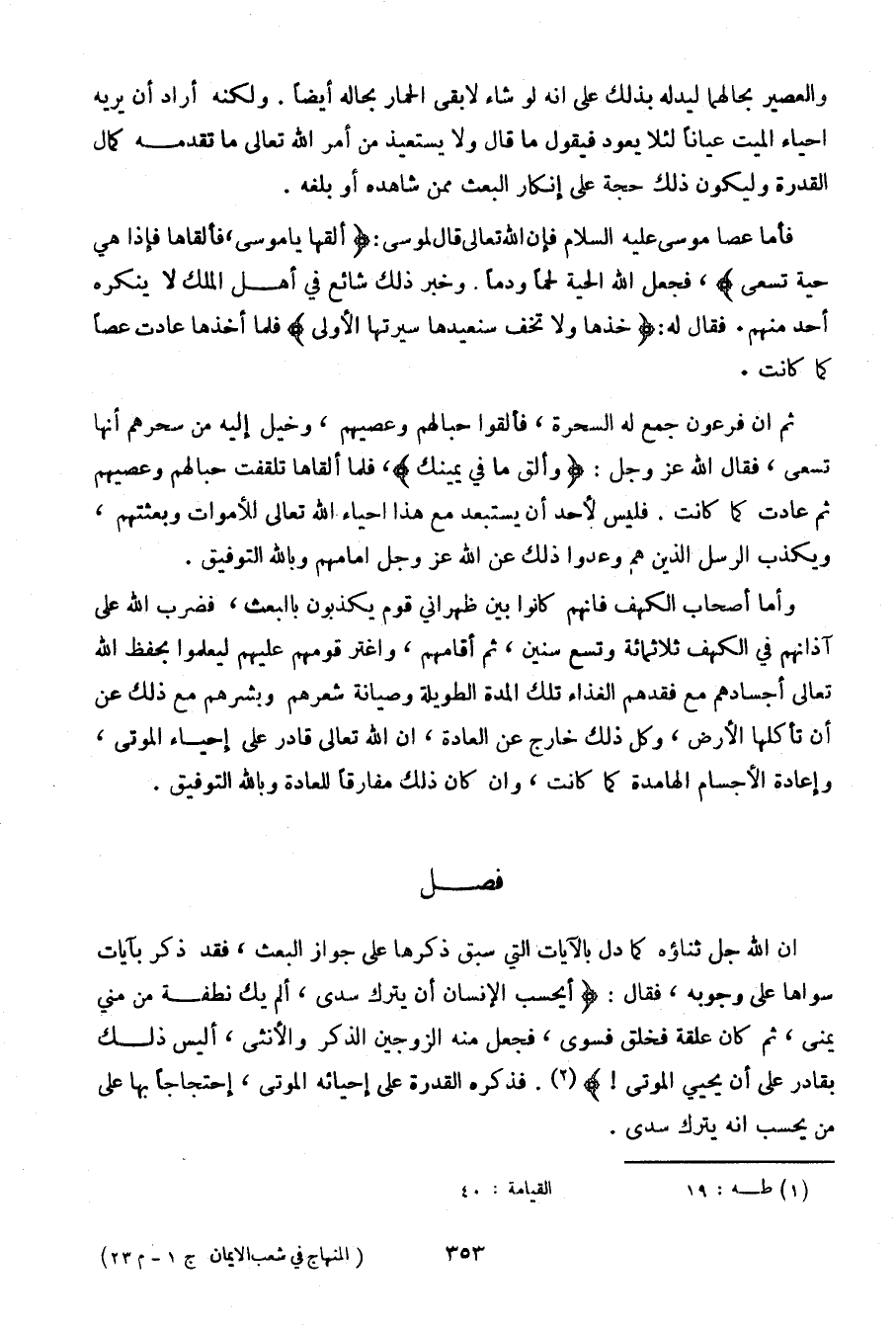 ثم أن فرعون جمع له السحرة، فألقوا حبالهم وعصيهم، وخيل إليه من سحرهم أنها تسعى، فقال الله عز وجل: {وألق ما في يمينك}، فلما ألقاها تلقفت حبالهم وعصيهم ثم عادت كما كانت. فليس لأحد أن يستبعد مع هذا إحياء الله تعالى للأموات وبعثتهم، ويكذب الرسل الذين هم وعدوا ذلك عن الله عز وجل أمامهم وبالله التوفيق.