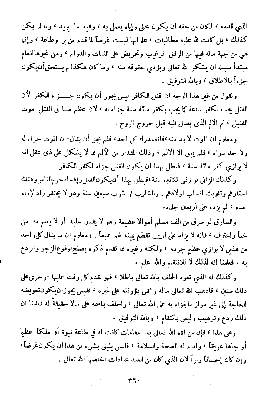 ومعلوم أن الموت لا بد منه، فإنه مدرك كل واحد، فلم يجز أن يقال: أن الموت جزاء له ولا حد سواه، فلم يبق إلا الألم، وذلك المقدار من الألم مما لا يشكل على ذي عقل أنه لا يوازي كفر مائة سنة، فبطل بهذا أن يكون القتل جزاء لكفر الكافر.