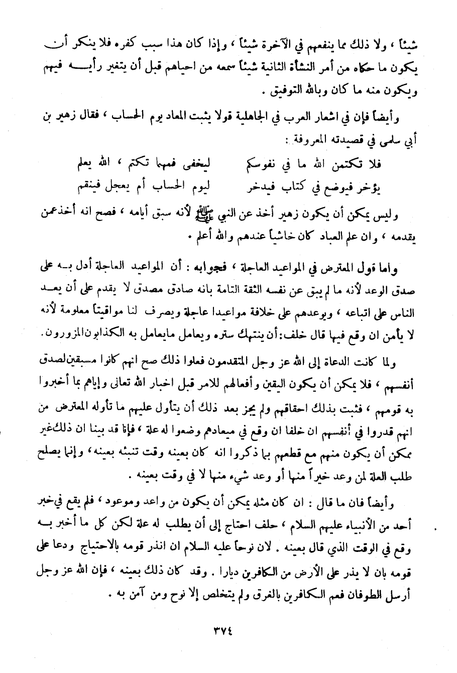 وأيضا فإن في أشعار العرب في الجاهلية قولا يثبت المعاد يوما لسحاب، فقال زهير بن أبي سلمى في قصيدته المعروفة: