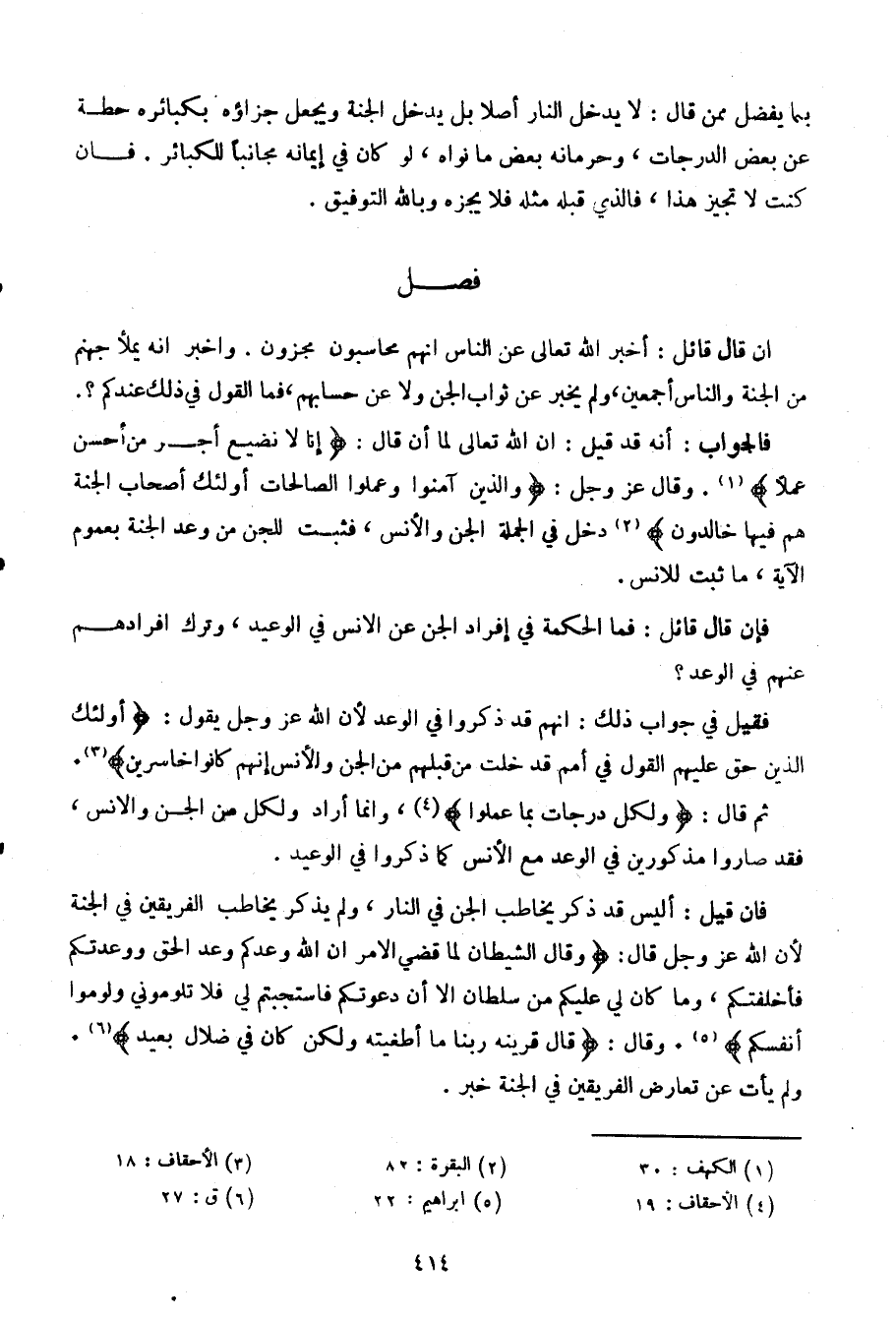 إن قال قائل: أخبر الله تعالى عن الناس أنهم محاسبون مجزون. وأخبر أنه يملأ جهنم من الجنة والناس أجمعين، ولم يخبر عن ثواب الجن ولا عن حسابهم، فما القول في ذلك عندكم؟.