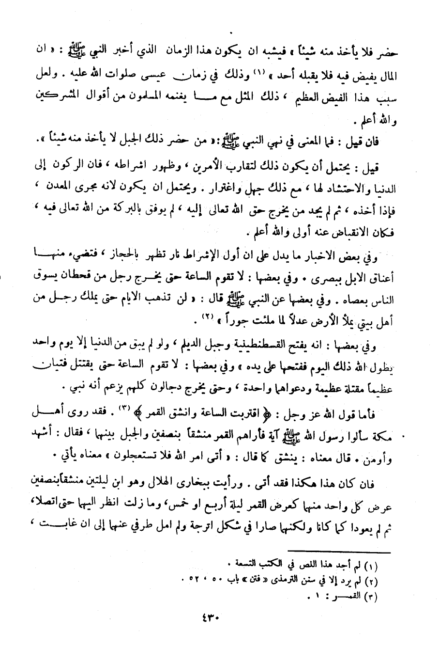 حضر فلا يأخذ منه شيئا) فيشبه أن يكون هذا الزمان الذي أخبر النبي صلى الله عليه وسلم: "إن المال يفيض فلا يقبله أحد" وذلك في زمان عيسى صلوات الله عليه. ولعل سبب هذا الفيض العظيم، ذلك المثل مع ما يغنمه المسلمون من أقوال المشركين والله أعلم.