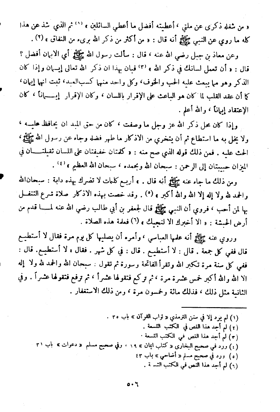 "من شغله ذكري عن ملتي، أعطيته أفضل ما أعطي السائلين" ثم الذي شذ عن هذا كله ما روي عن النبي صلى الله عليه وسلم أنه قال: "من أكثر من ذكر الله بريء من النفاق".