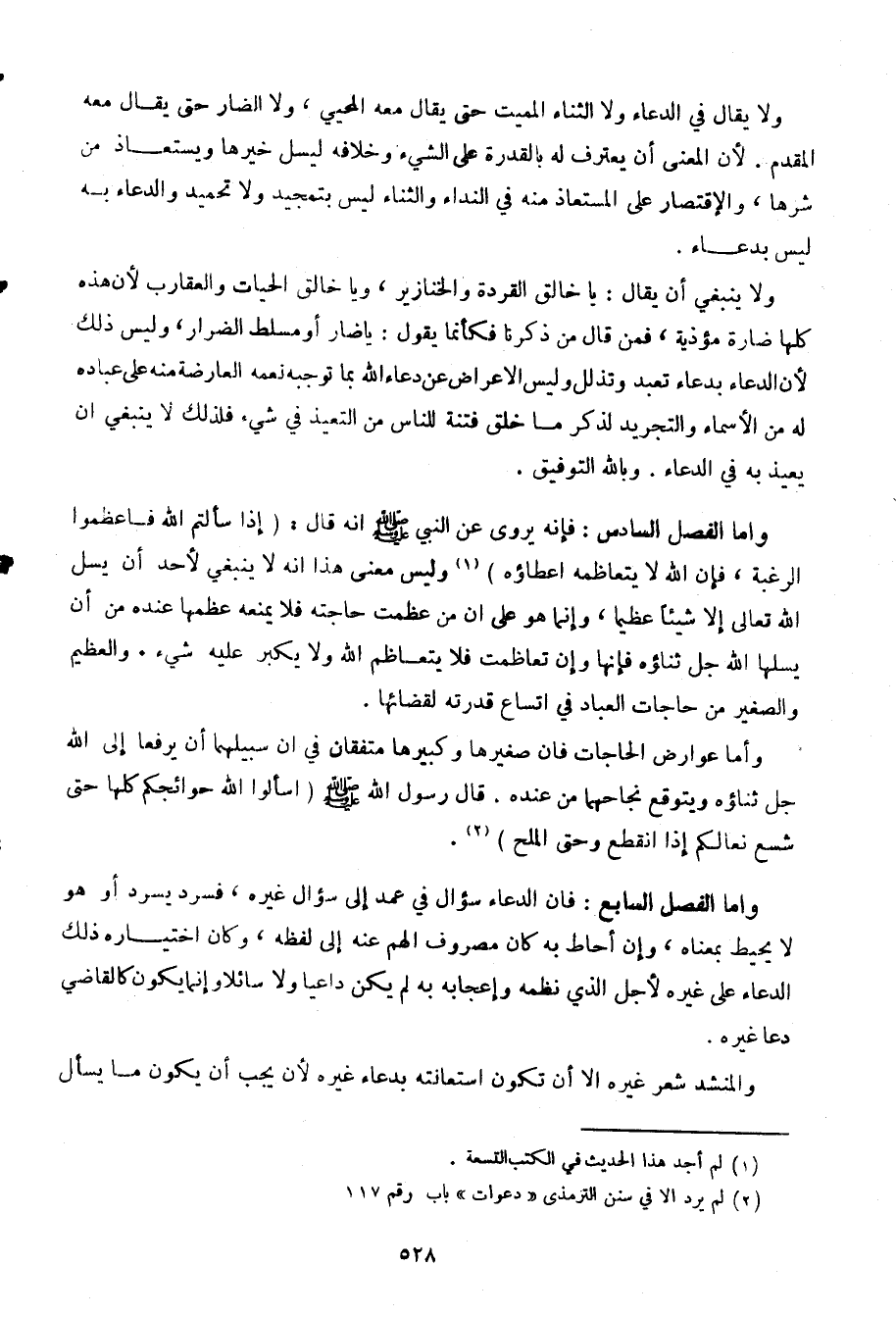 وأما الفصل السابع: فإن الدعاء سؤال في عمد إلى سؤال غيره، فسرد يسرد أو هو لا يحيط بمعناه، وإن أحاط به كان مصروف الهم عنه إلى لفظه، وكان اختياره ذلك الدعاء على غيره لأجل الذي نظمه وإعجابه به لم يكن داعيا ولا سائلا وإنما يكون كالقاضي دعا غيره.
