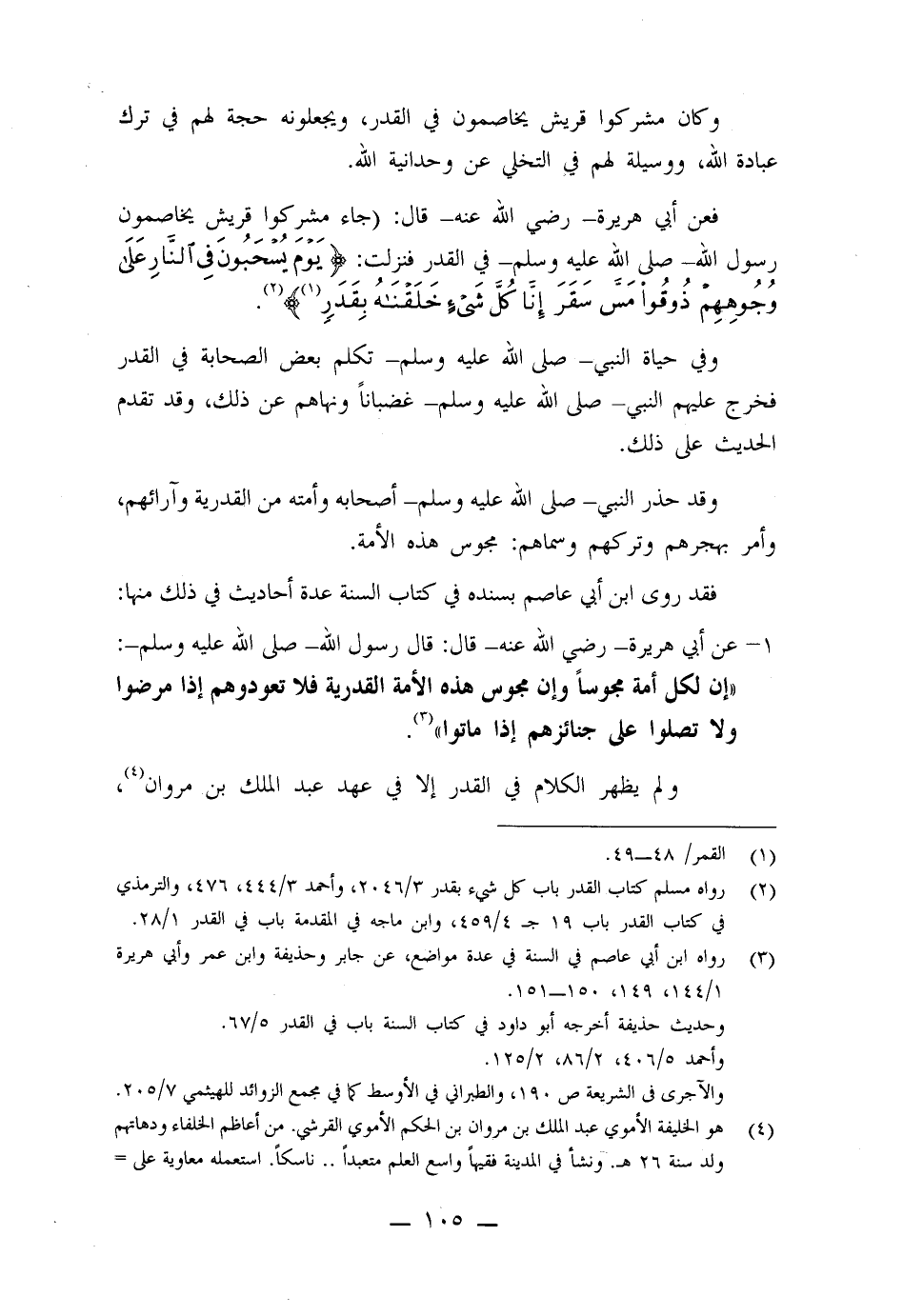 ولم يظهر الكلام في القدر إلا في عهد عبد الملك بن مروان،
