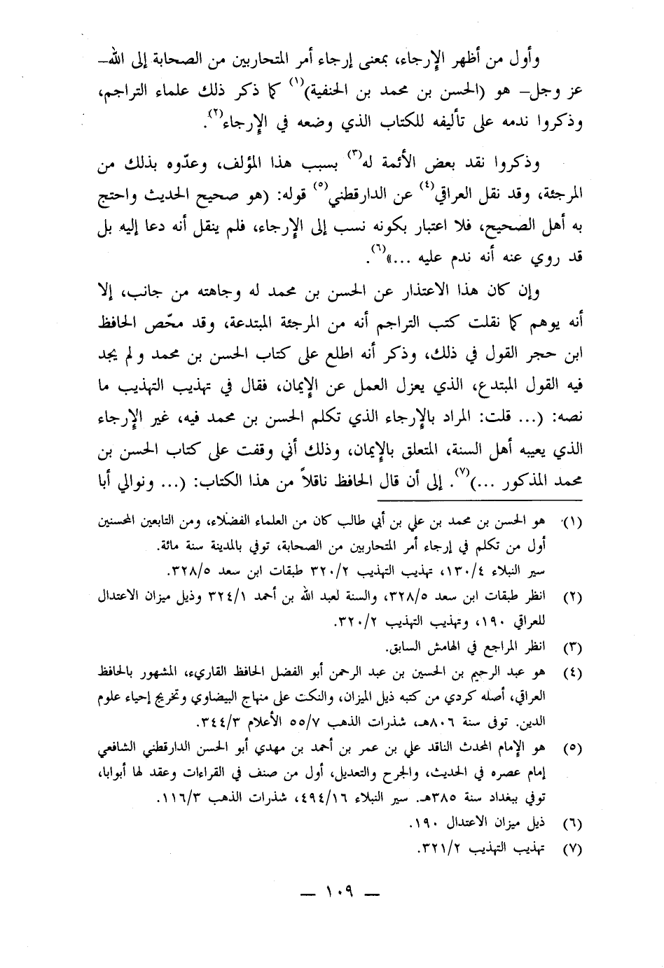وإن كان هذا الإعتذار عن الحسن بن محمد وله وجاهته من جانب، إلا أنه يوهم كما نقلت كتب التراجم أنه من المرجئة المبتدعة، وقد محّص الحافظ بن حجر القول في ذلك، وذكر أنه اطلع على كتاب الحسن بن محمد ولم يجد فيه القول المبتدع، الذي يعزل العمل عن الإيمان، فقال في تهذيب التهذيب ما نصه: ( ... قلت: المراد بالإرجاء الذي تكلم الحسن بن محمد فيه، غير الإرجاء الذي يعيبه أهل السنة، المتعلق بالإيمان، وذلك أني وقفت على كتاب الحسن بن محمد المذكور ... ) ، إلى أن قال الحافظ ناقلاً من هذا الكتاب: ( ... ونوالي أبا