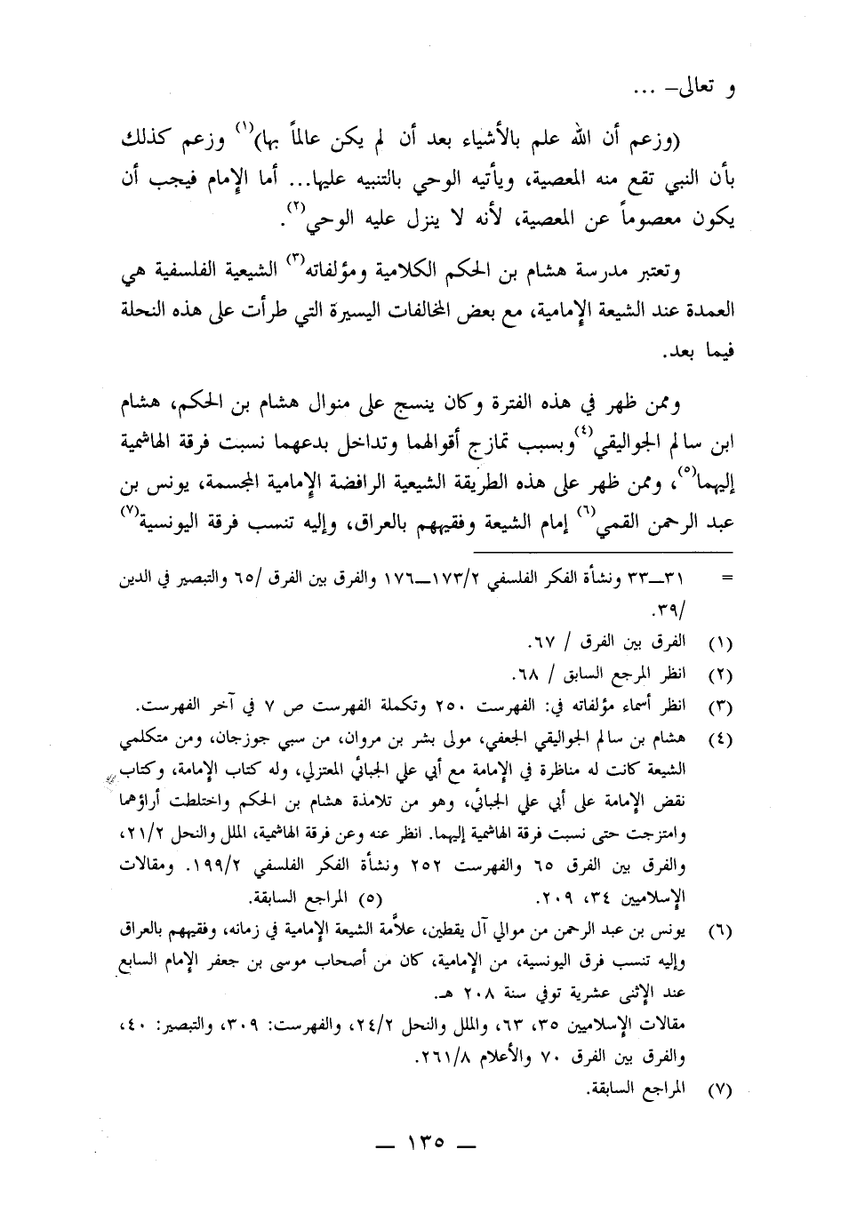 وتعالى - (وزعم أن الله علم بالأشياء بعد أن لم يكن علماً بها) ، وزعم كذلك بأن النبي تقع منه المعصية، ويأتيه الوحي بالتنبيه عليها ... أما الإمام فيجب أن يكون معصوماً عن المعصية، لأنه لا ينزل عليه الوحي.