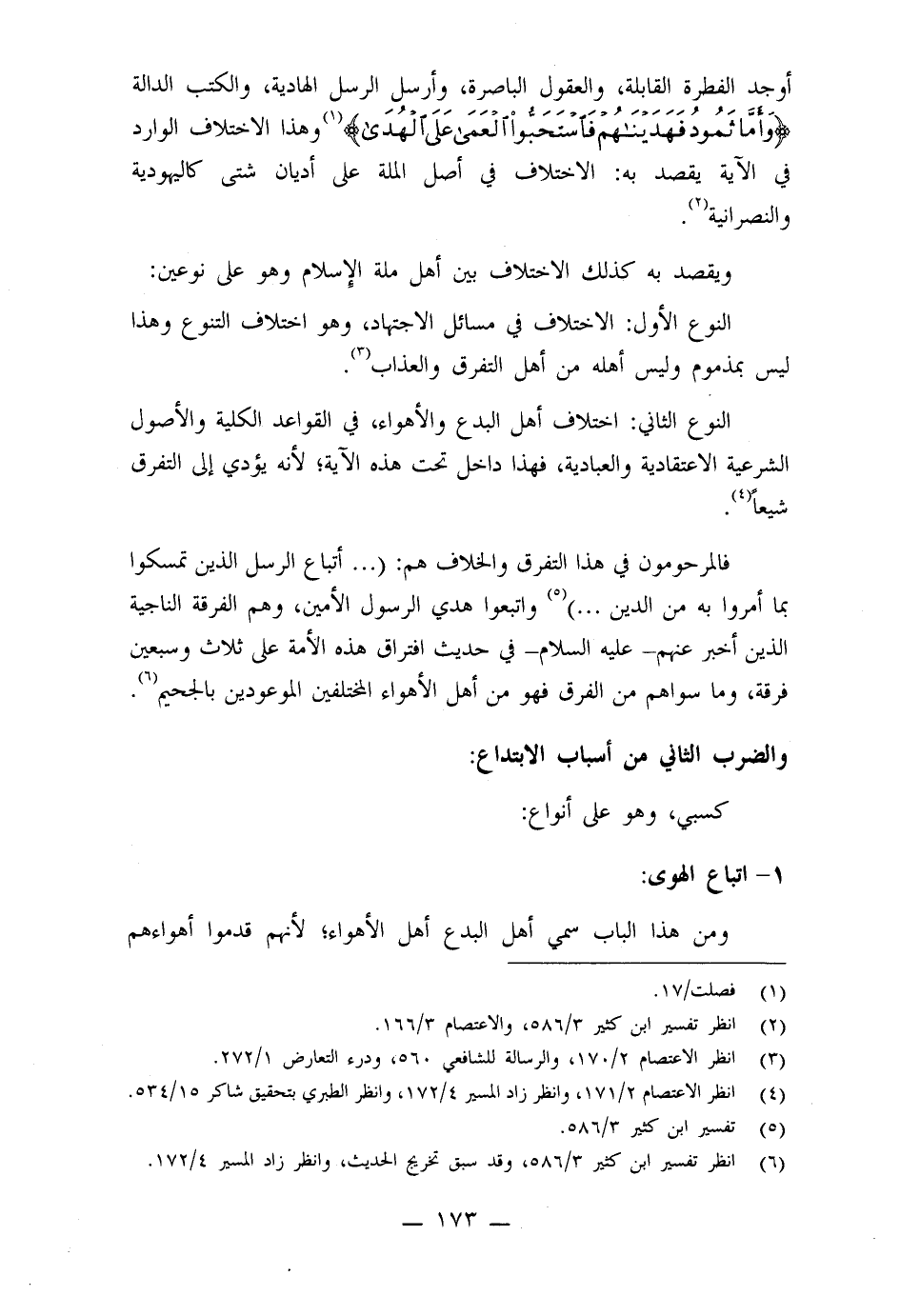 النوع الأول: الاختلاف في مسائل الاجتهاد، وهو اختلاف التنوع وهذا ليس بمذموم وليس أهله من أهل التفرق والعذاب.