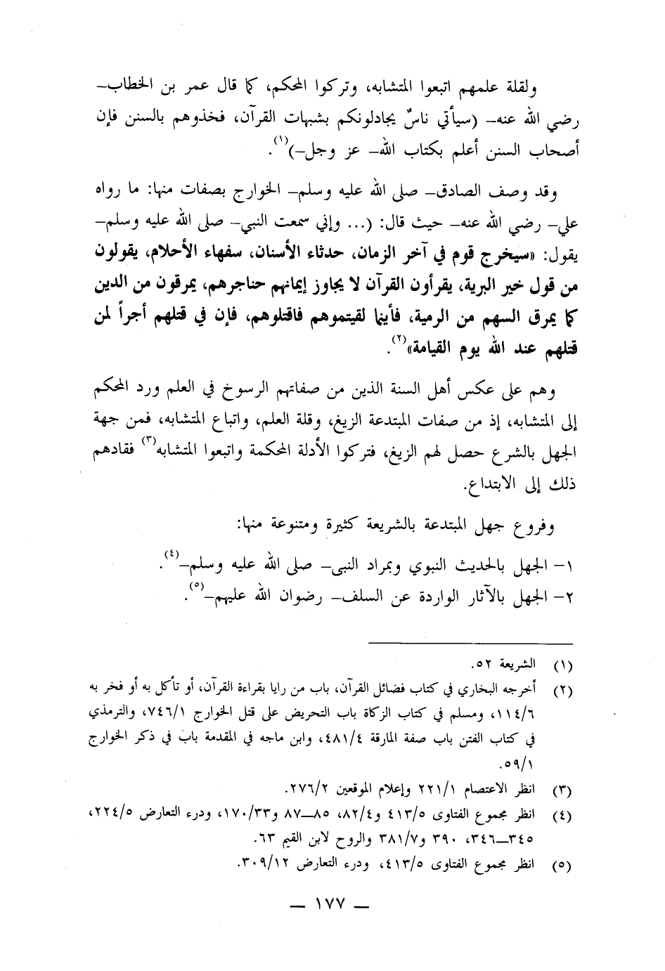ولقلة علمهم اتبعوا المتشابه، وتركوا المحكم، كما قال عمر بن الخطاب - رضي الله عنه - (سيأتي ناس يجادلونكم بشبهات القرآن، فخذوهم بالسنن فإن أصحاب السنن أعلم بكتاب الله - عز وجل -) .