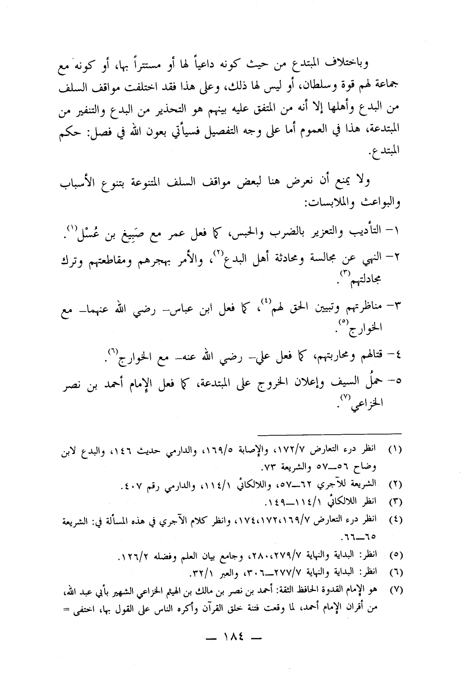 5- حمل السيف وإعلان الخروج على المبتدعة، كما فعل الإمام أحمد بن نصر الخزاعي.