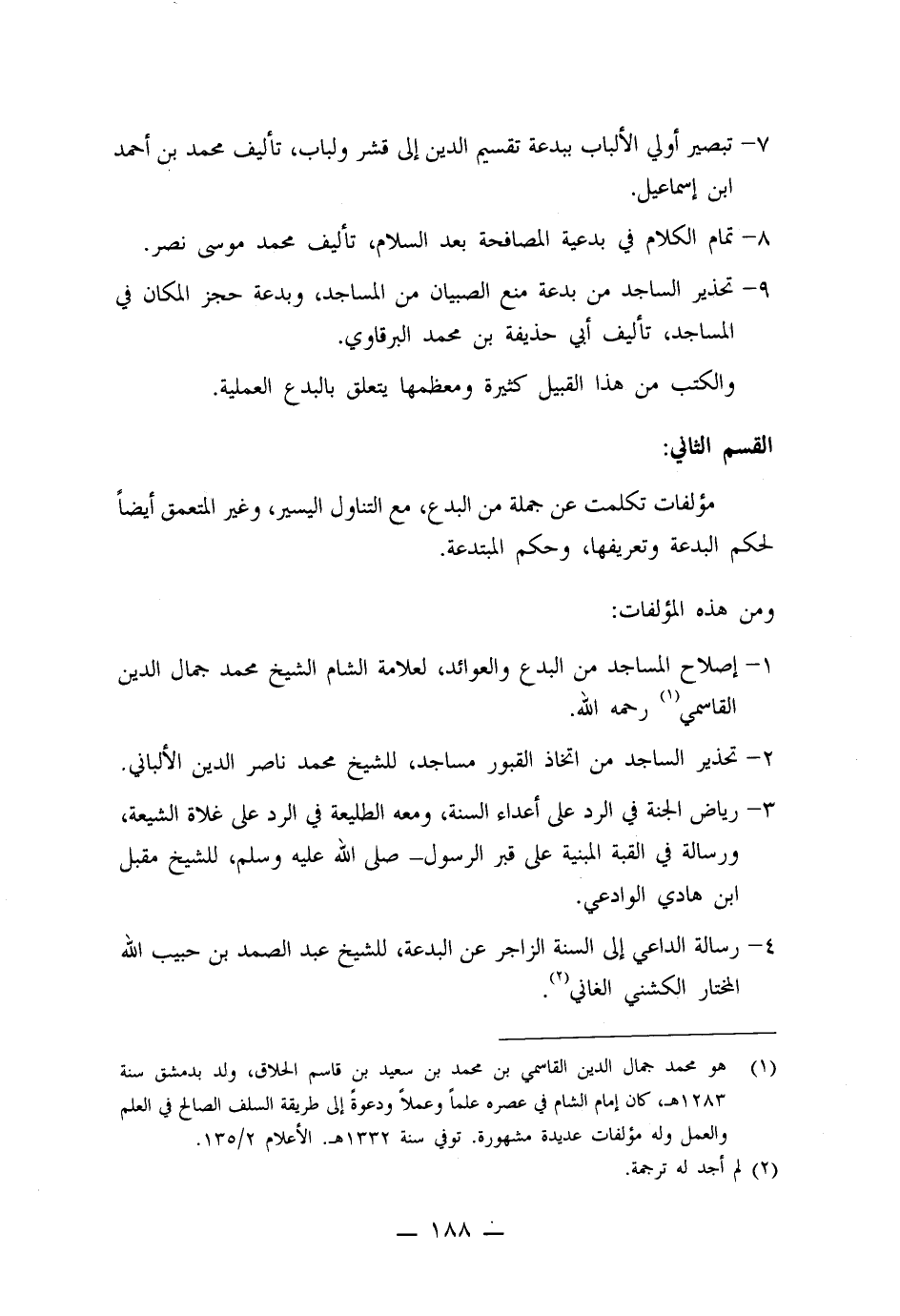 1) إصلاح المساجد من البدع والعوائد، لعلامة الشام الشيخ محمد جمال الدين القاسمي رحمه الله.