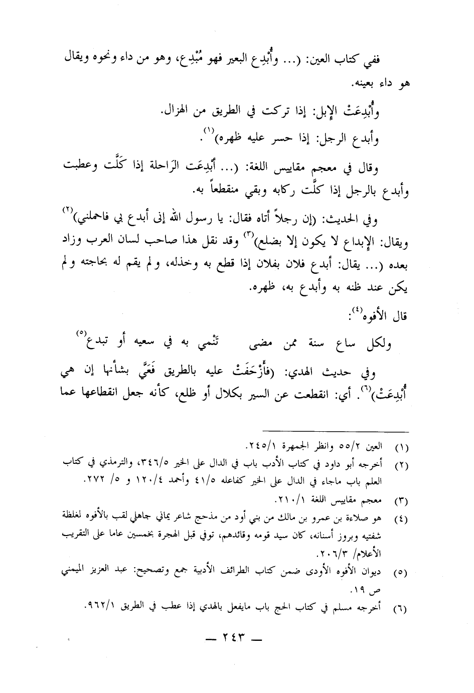 وقال في معجم مقاييس اللغة: ( ... أبدعت الراحلة إذا كلت وعطبت وأبدع بالرجل إذا كلت ركابه وبقي منقطعا ً به) .