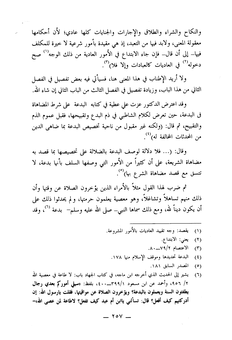 وقال: ( ... فلا دلالة لوصف البدعة بالضلالة على تخصيصها بما قصد به مضاهاة الشريعة، على أن كثيرا ً من الأمور التي وصفها السلف بأنها بدعة، لا تتسق مع قصد مضاهاة الشرع بها)