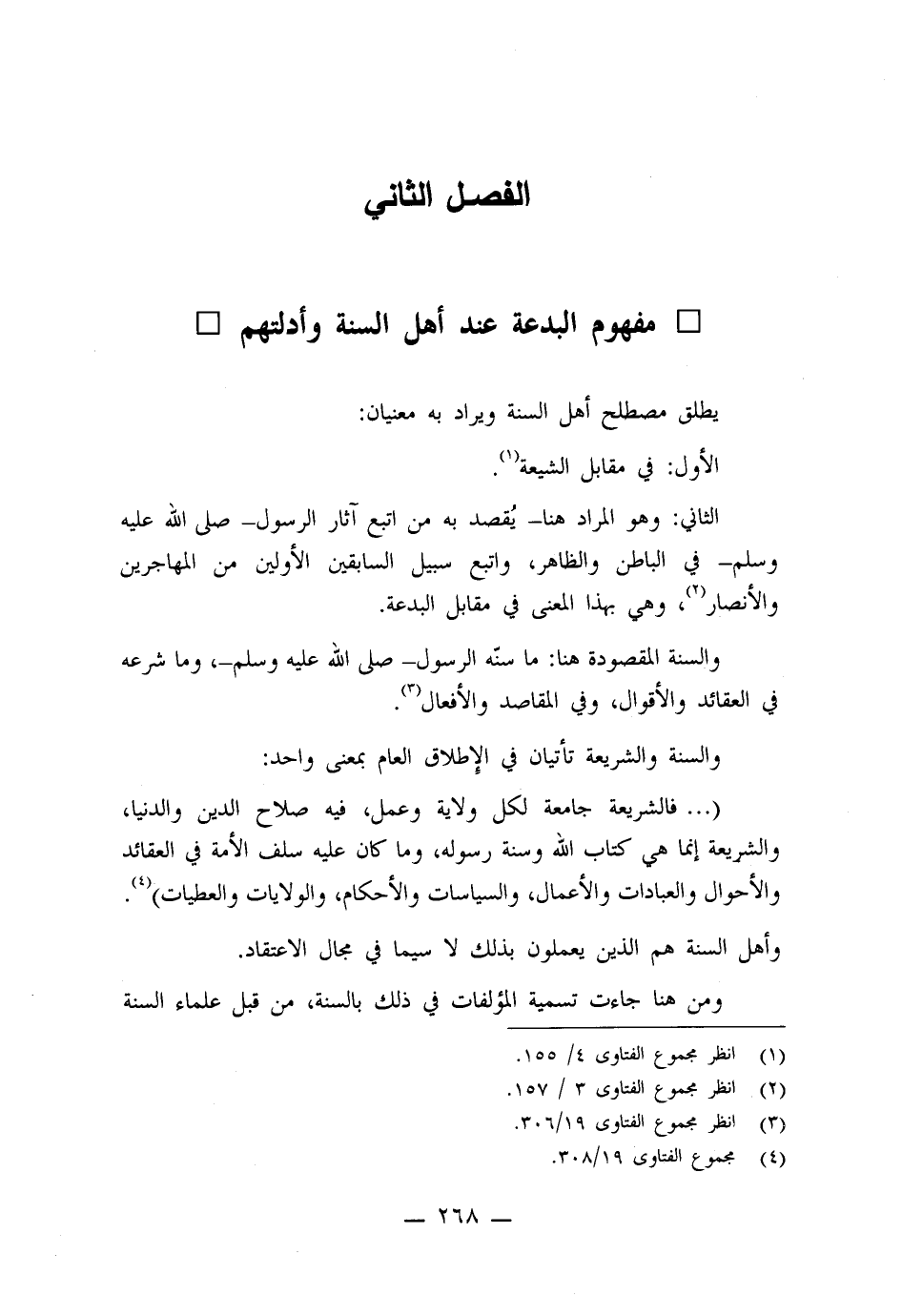 الفصل الثاني: مفهوم البدعة عند أهل السنة وأدلتهم