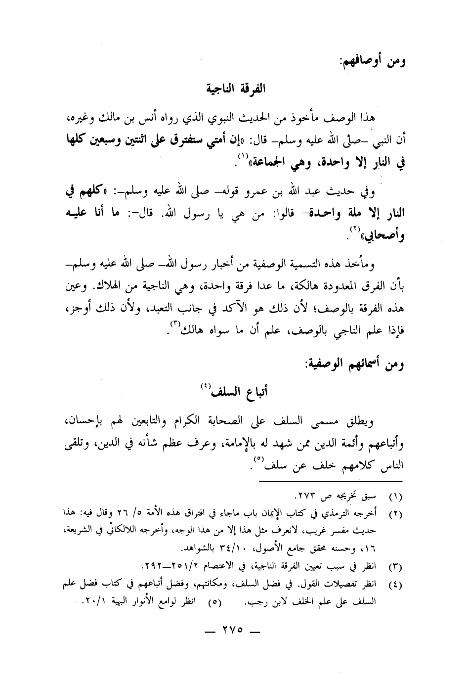 هذا الوصف مأخوذ من الحديث النبوي الذي رواه أنس بن مالك وغيره، أن النبي - صلى الله عليه وسلم - قال: " إن أمتي ستفترق على اثنتين وسبعين كلها في النار إلا واحدة، وهي الجماعة ".