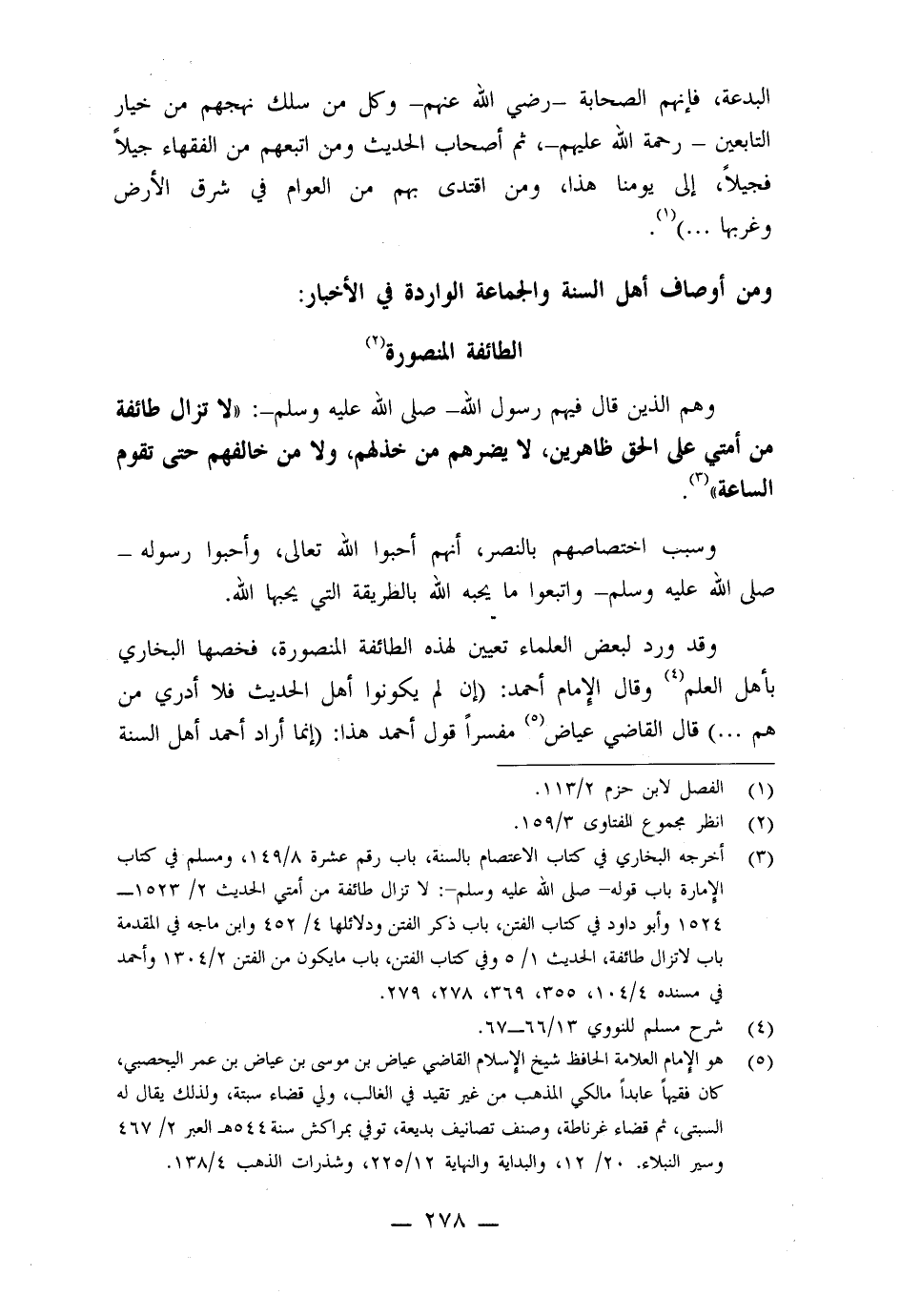 وهم الذين قال فيهم رسول الله - صلى الله عليه وسلم -: " لا تزال طائفة من أمتي على الحق ظاهرين، لا يضرهم من خذلهم، ولا من خالفهم حتى تقوم الساعة ".