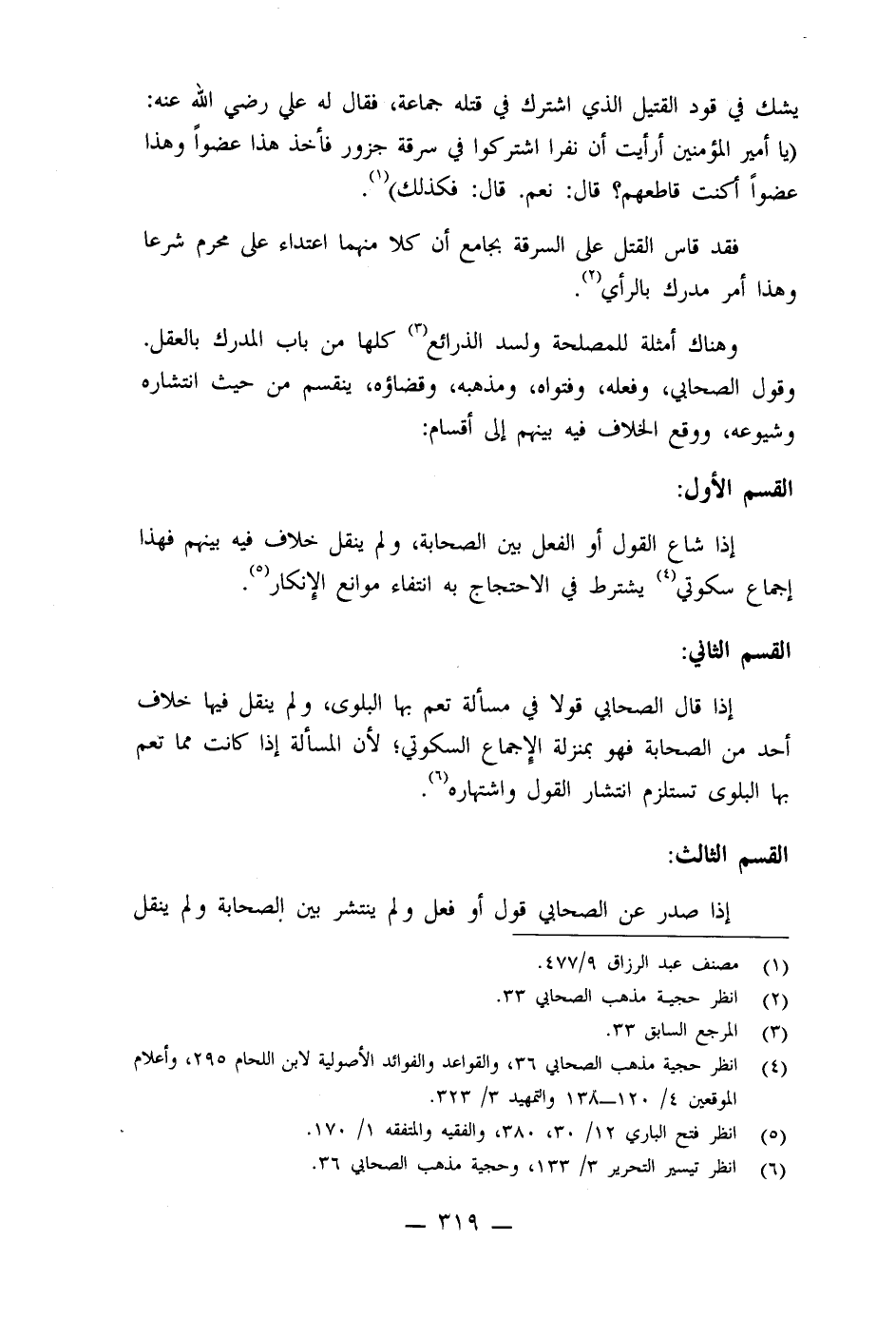 وهناك أمثلة للمصلحة ولسد الذرائع كلها من باب المدرك بالعقل، وقول الصحابي، وفعله، وفتواه، ومذهبه، وقضاؤه، ينقسم من حيث انتشاره وشيوعه، ووقع الخلاف في بينهم إلى أقسام: