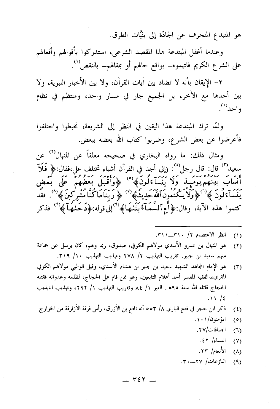 ولما ترك المبتدعة هذا اليقين في النظر إلى الشريعة، تخبطوا واختلفوا فأعرضوا عن بعض الشرع، وضربوا كتاب الله بعضه ببعض.