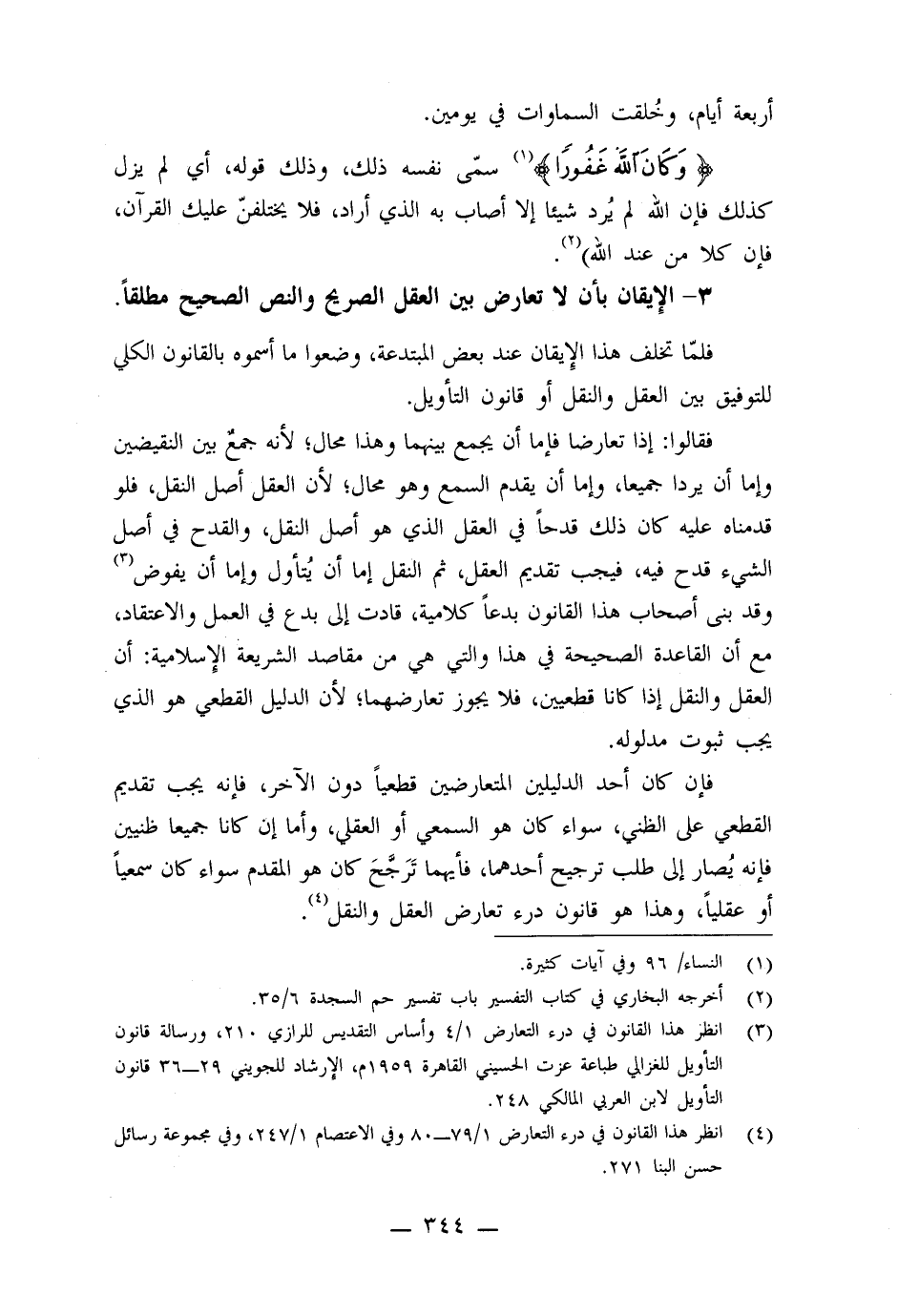 3- الإيقان بأن لا تعارض بين العقل الصريح والنص الصحيح مطلقا ً: