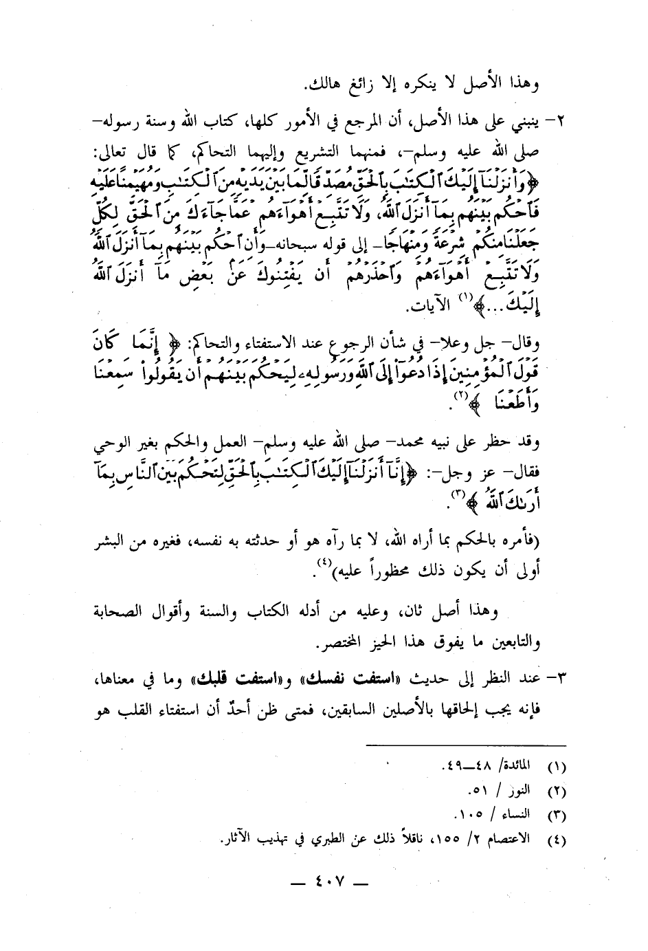 1- عند النظر إلى حديث " استفت نفسك "و " استفت قلبك " وما في معناه، فإنه يجب إلحاقها بالأصلين السابقين، فمتى ظن أحدٌ أن استفتاء القلب هو
