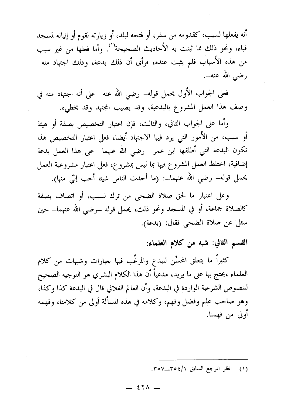القسم الثاني: شبه من كلام العلماء:
